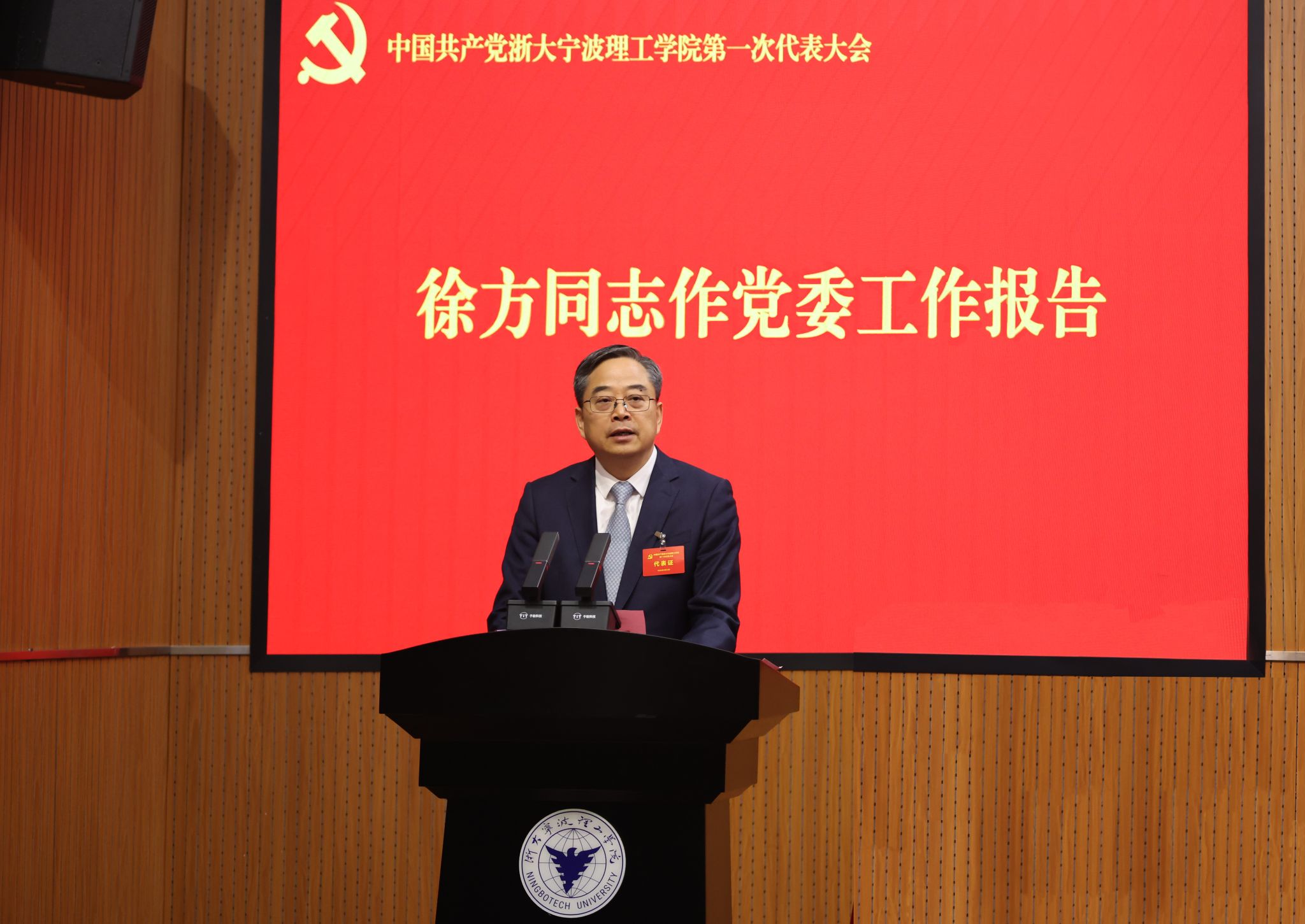 2026年4月24日,中国共产党浙大宁波理工学院第一次代表大会在金宗城法学教学中心隆重召开。徐方同志代表中共浙大宁波理工学院委员会,作题为《牢记嘱托 开拓创新 为建成“港城特色、浙大底色、理工本色”一流创新性应用型大学团结奋斗》的报告。