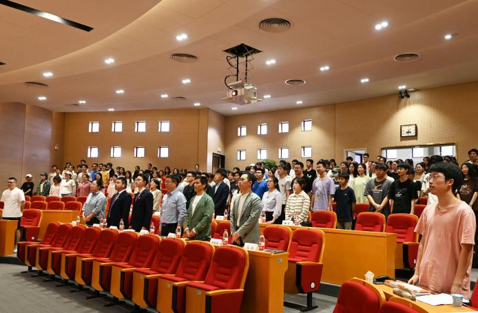 活动伊始,全体起立,奏唱国歌。商学院党委书记、副院长马翔为活动致辞,他提到,文化节不仅充分展示了商学院“超越”文化的风采,为商院学子营造了积极向上的学习氛围,提供了科学求知的文化殿堂,打造了展现自我的多元平台,同时为院企合作建立了“绿色通道”,拓宽创新人才培养渠道。