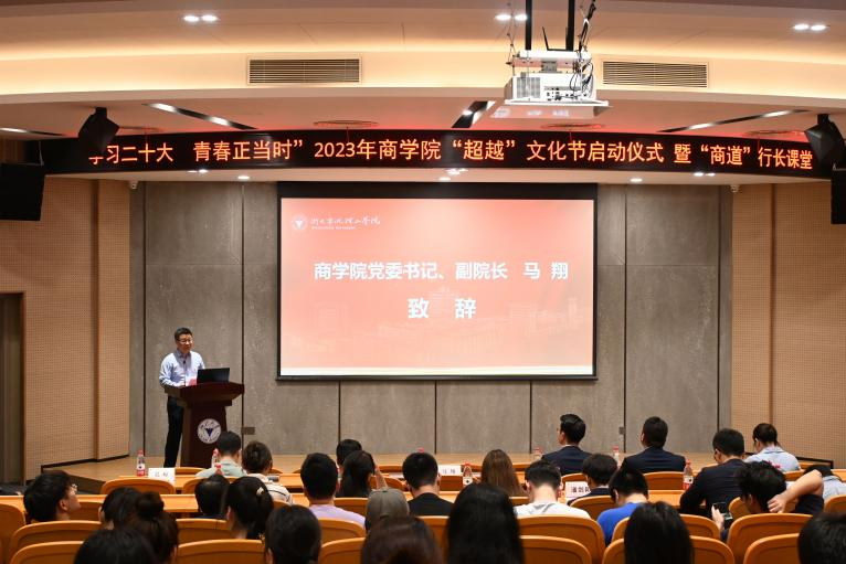 为丰富校园文化,提高学生综合素养,给学生搭建展示才华的舞台,商学院举办了“学习二十大 青春正当时”——2023年“超越”文化节。4月18日下午,在启新大讲堂举办文化节启动仪式暨“商道”行长课堂。