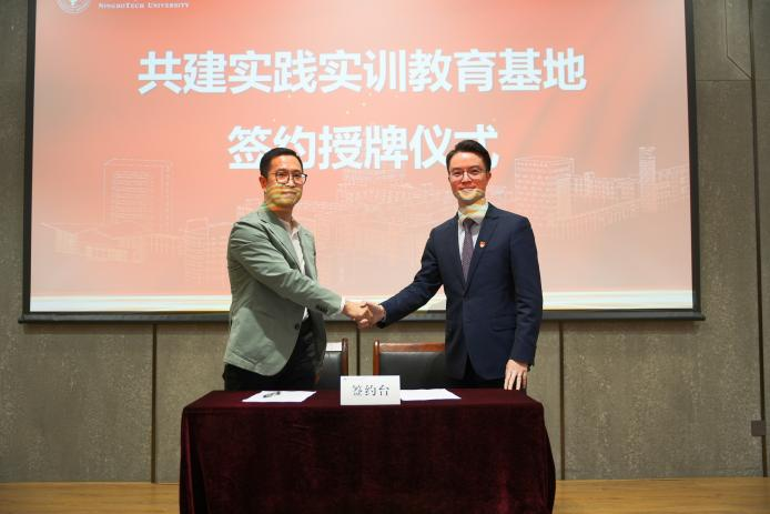 启动仪式上还进行了校企合作签约授牌仪式。学院副院长刘艳彬代表商学院与宁波银行科技支行行长崔振锋共同签署校企合作共建实践实训教育基地协议书,学院副院长鞠芳辉为企业颁发了基地铭牌。