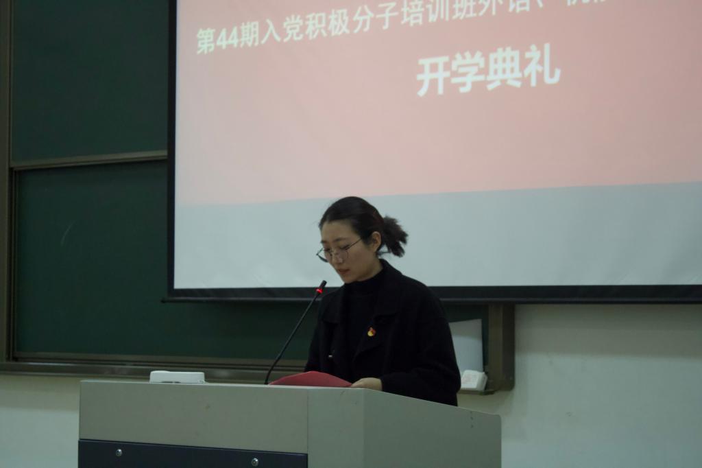 随后,任凯老师作了开班动员讲话。他向大家提出三点希望:一是端正学习态度,注重学习方法,真正学懂、弄通党的基本理论知识;二是严格遵守培训纪律,确保培训成效;三是注重平时学习与积累,不断提升自身的政治理论水平和道德情操。希望大家通过此次培训,深入学习党史,做爱党爱国、信念坚定的新时代大学生,砥砺品行、修身立德,力争早日成为一名合格的共产党员。