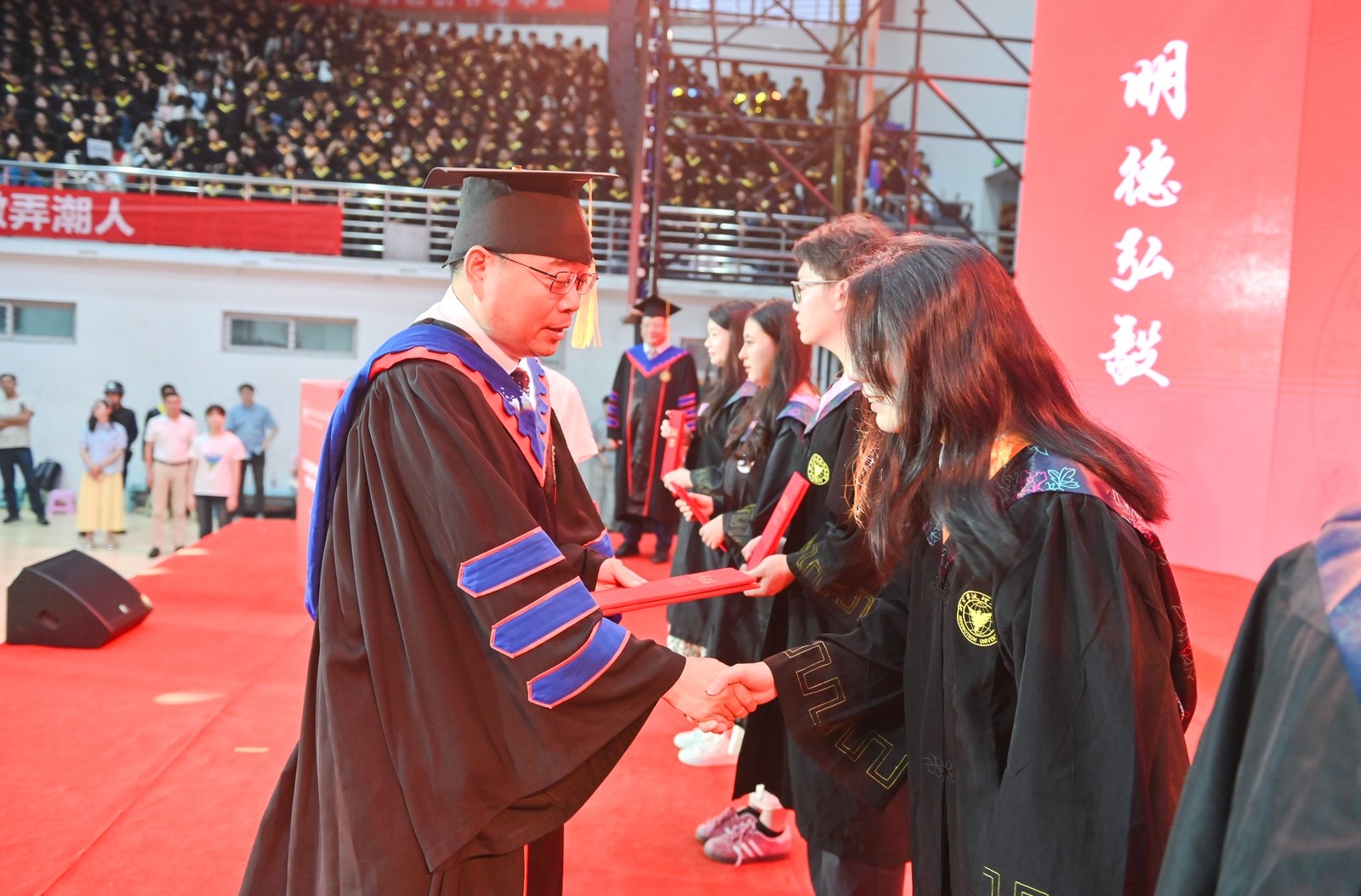 6月11日晚,学校举行2025届学生毕业典礼暨学位授予仪式。学校领导,各部门、各学院负责人,全体辅导员、教务员、毕业班班导师、教师代表、家长代表和全体毕业生参加。在这里,3000余名毕业生结束了四年的大学生涯,即将奔赴世界各地。学校党委副书记黄光杰主持毕业典礼。典礼线上同步直播,3万余人在线观礼。