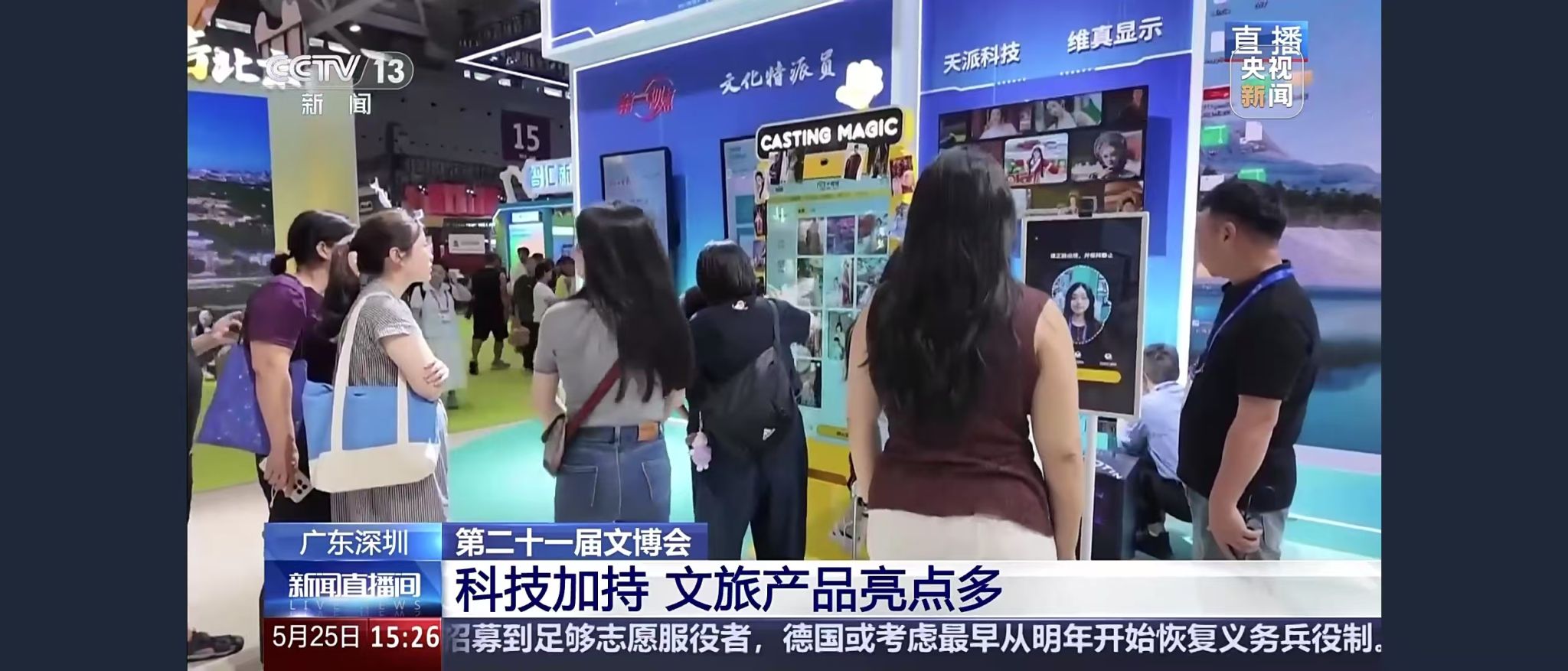 5月22日至26日,第二十一届中国(深圳)国际文化产业博览交易会盛大启幕。在这场汇聚 6280家政府组团、文化机构及企业,超12万件文化产品争奇斗艳的年度盛会上,浙大宁波理工学院数字文化创新中心与浙江天派科技有限公司联合研发的“大咖镜”AI影像设备,成为宁波展区乃至全场瞩目的焦点,更获央视《新闻直播间》专题报道,以科技之力为文旅体验开拓全新维度。