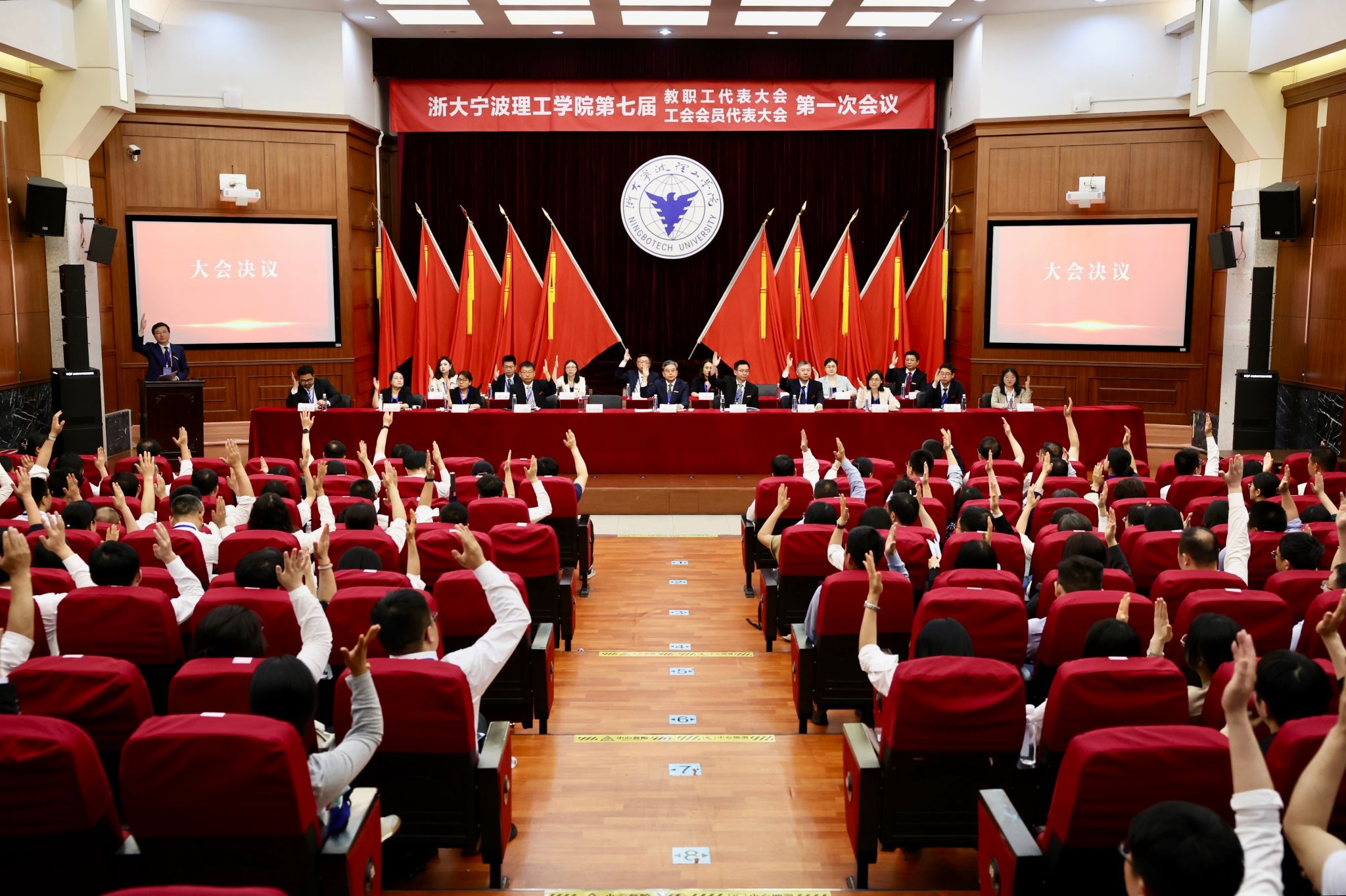 大会号召,全校教职工要在学校党委坚强领导下,坚持“为国家和地区培养卓越专业人才”办学使命,以实干作答、用奋斗破题,共谱学校高质量发展新篇章;坚持“立足宁波、依托浙大、放眼全球”发展思路,锚定更名大学、博士点申报等核心任务,促创新、强特色、提质量,在应用型高校赛道上跑出理工加速度、彰显理工硬实力;坚持“港城特色、浙大底色、理工本色”发展方向,以“主人翁”姿态,深耕学校发展大局,以“实干家”精神,为加快建成一流创新性应用型大学携手奋进、勇毅前行!