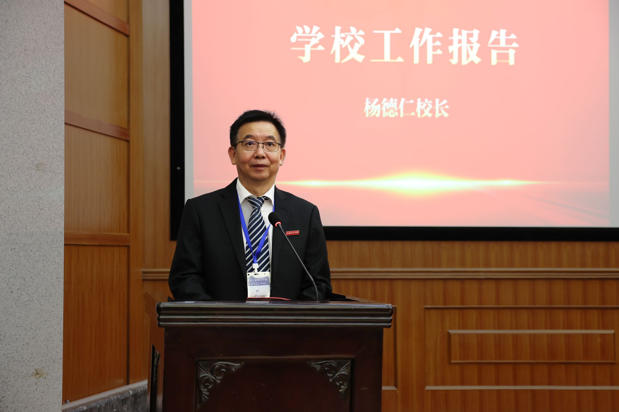 5月16日,学校召开第七届教职工代表大会、工会会员代表大会第一次会议。代表们齐聚一堂,聚智聚力、谋划未来,擘画学校发展宏伟蓝图。学校党委书记徐方致辞,校长杨德仁作学校工作报告,党委副书记、教代会执委会主任、工会主席杨国富主持大会。全体校领导、正式代表、列席代表、特邀代表等参加会议。