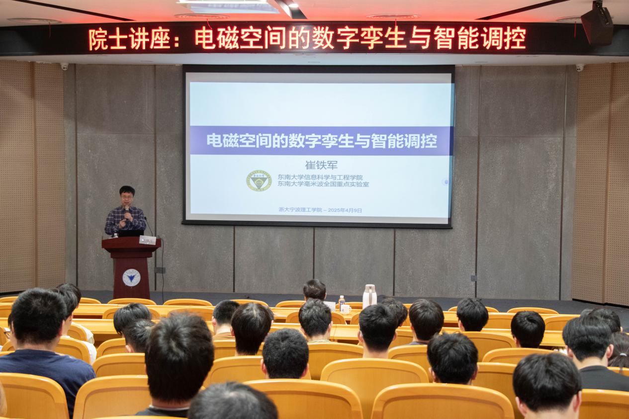 4月9日下午,中国科学院院士、东南大学毫米波国家重点实验室主任崔铁军应邀来校,为师生带来题为《电磁空间的数字孪生与智能调控》的前沿学术讲座。学校校长杨德仁院士主持本次讲座。