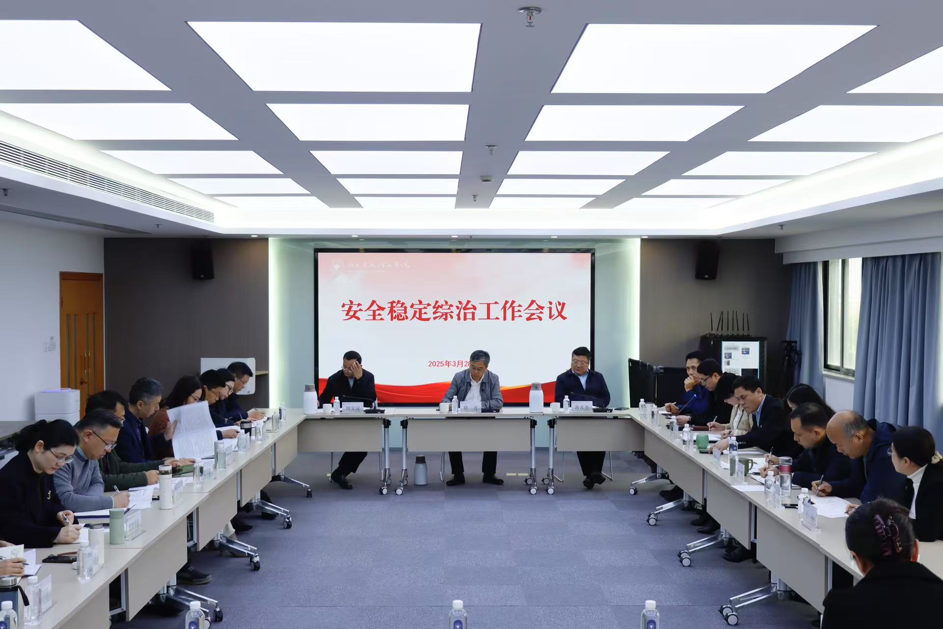 3月28日上午,学校召开新学期安全稳定综治工作会议,传达上级关于校园安全稳定工作会议精神,分析研判当前校园安全稳定工作形势,部署落实新学期安全稳定重点工作任务。党委书记徐方主持并讲话。党委副书记黄光杰、纪委书记胡文汉及各学院党委书记、各部门负责人参加会议。