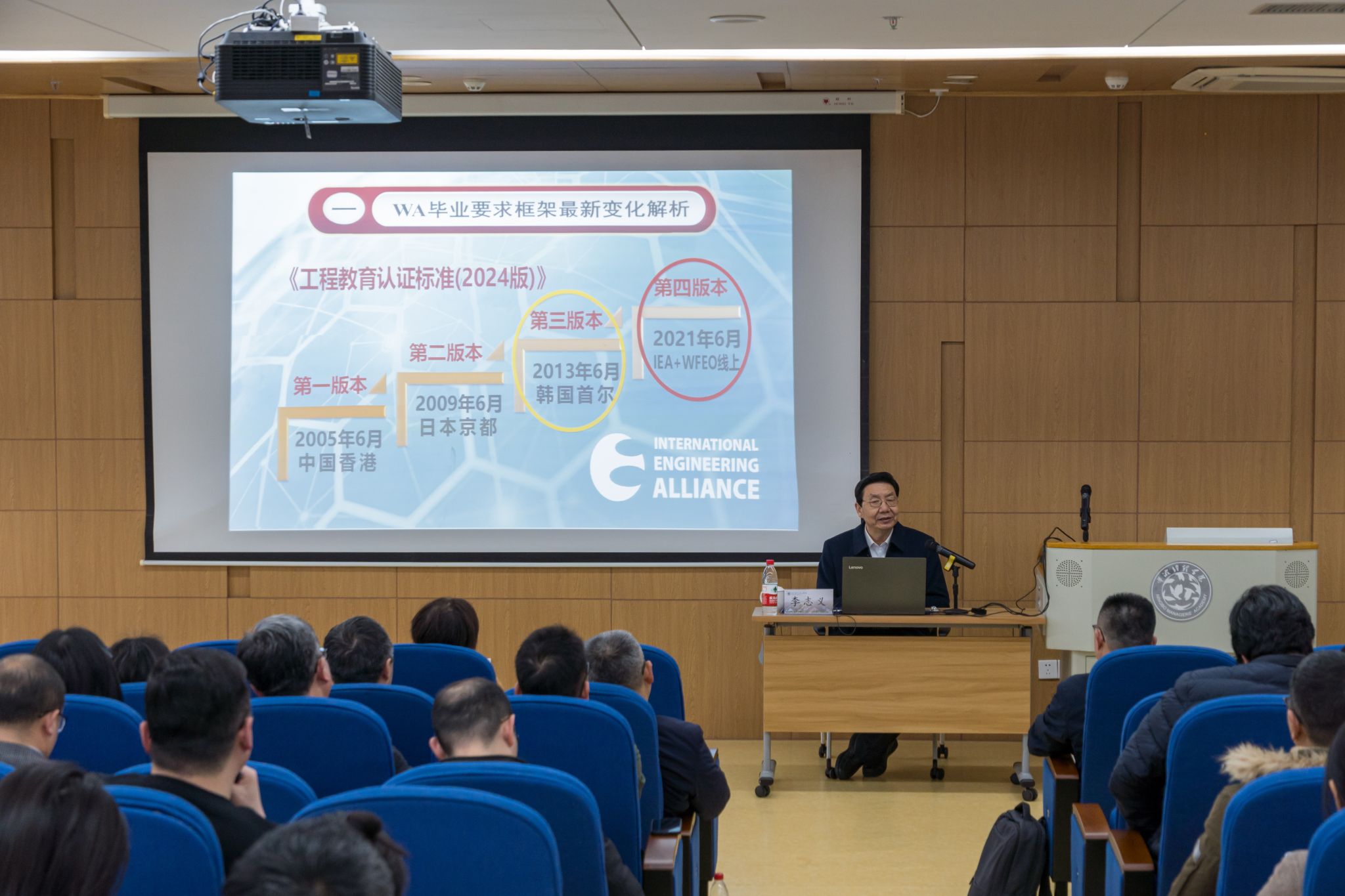 报告会上,李志义教授详细解读了2024版工程教育专业认证标准内涵。结合多年高等教育研究的理论积淀和丰富的实践经验,深刻剖析了华盛顿协议(WA)的最新变化及变化原因、我国工程教育专业认证标准变化以及新版WA毕业要求框架变化所带来的启示。报告内容紧扣专业认证的核心要点,极具实操指导价值,为参会人员深入理解、运用新版认证标准提供了宝贵思路。