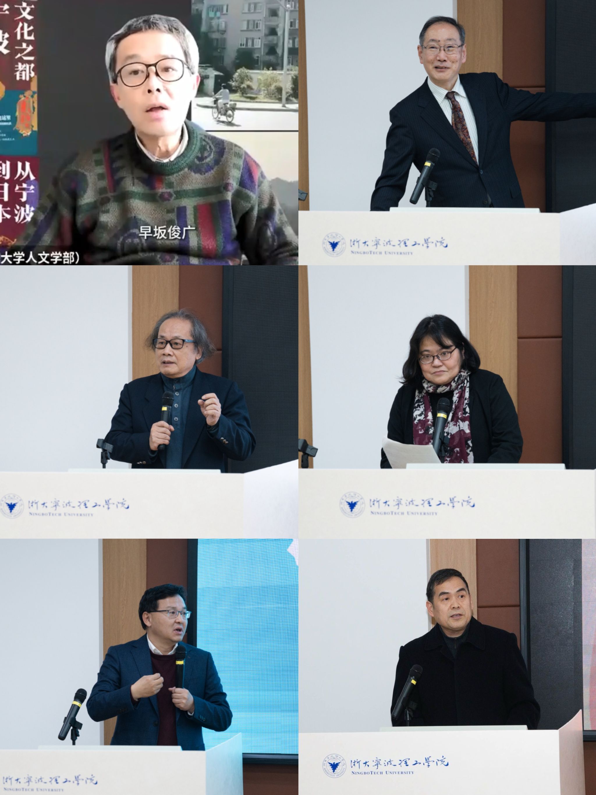 在随后由李先瑞教授主持的学术沙龙中,中日学者围绕宁波的文化特质展开深度研讨。日本信州大学教授早坂俊广通过视频连线表达了对《文化之都 宁波》中文版出版的喜悦与感谢,他指出宁波作为日本遣唐使的重要登陆地,其天一阁藏书楼与《四明丛书》承载着东亚儒学传承的密码。日本鹿儿岛大学名誉教授高津孝介绍了《从宁波到日本:生活世界的对话》,指出该书集结了日本历史学、思想史、文学史、美术史、艺能史、佛学、考古学、人类学、建筑学等多方专家学者,鸟瞰式地描绘了宁波历史上在文化、经贸方面对周边地区之影响,是跨学科研究的集大成之作。浙江大学王勇教授以“海上书路”为题,揭示了宁波在东亚典籍传播中的核心地位。他提到,唐代以来,大量汉籍经宁波传入日本,催生了空海、最澄等日本文化巨匠。日本早稻田大学特聘教师西山美香则分享了宁波月湖与湖心寺作为南宋佛教律院中心,在放生文化实践中的核心地位。浙大宁波理工学院外国语学院执行院长蔡亮教授则聚焦《海外宁波学的生成》,系统梳理了宁波作为“海上书路”枢纽的历史角色。他以月湖、天一阁、大运河等文化符号为例,论证了宁波在中华文明海外传播中的独特路径,为“宁波学”研究提供学理支撑。