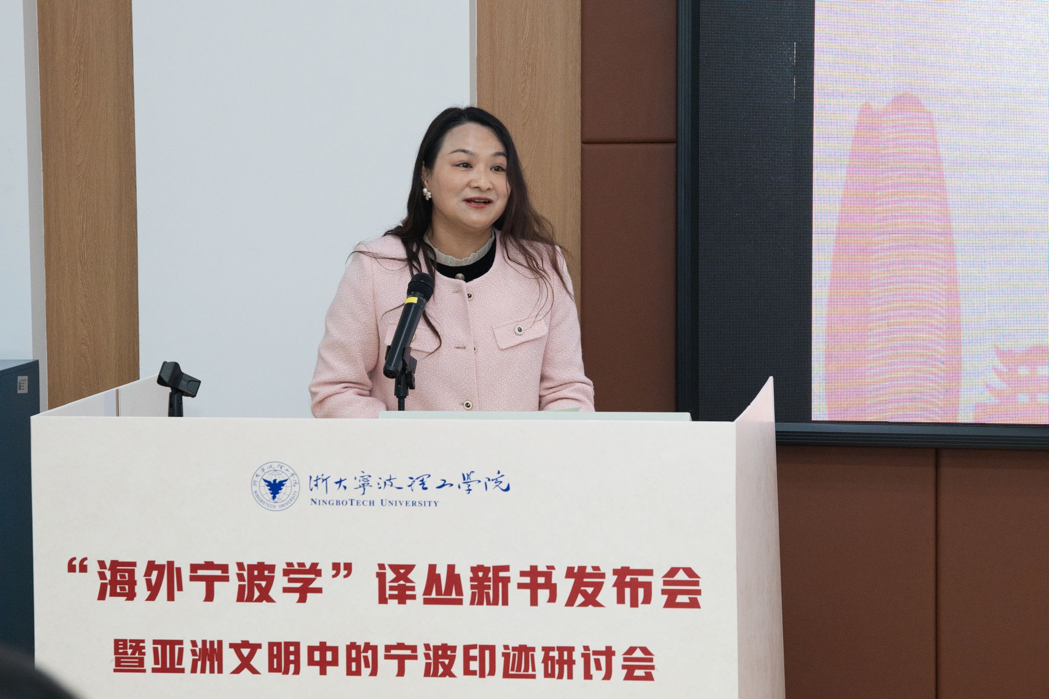 为贯彻落实宁波市委《关于繁荣发展港城文化 更好担负起新时代的文化使命 加快建设高水平文化强市的行动方案》,积极响应加快建设高水平文化强市动员部署会暨全市宣传思想文化工作会议精神,2025年3月14日下午,由浙大宁波理工学院、浙江大学出版社联合主办的“海外宁波学译丛”新书发布会暨亚洲文明中的宁波印迹研讨会在浙大宁波理工学院学术交流中心举行。宁波市委宣传部、宁波市社科联等指导单位,来自中日两国的知名学者、文化界代表及高校师生齐聚一堂,共探宁波在亚洲文明交流中的历史地位与当代价值。