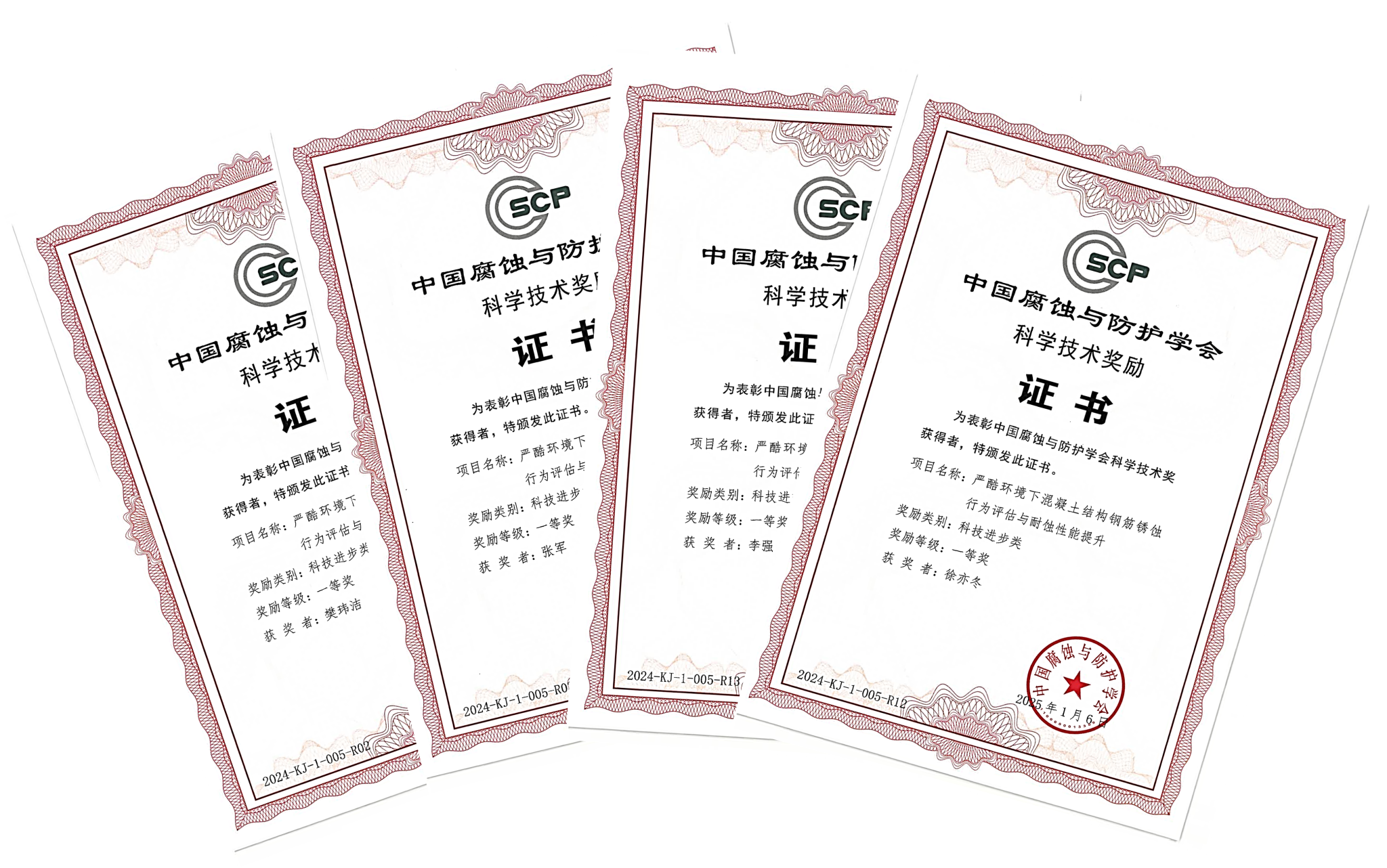 近日,中国腐蚀与防护学会公布了《关于表彰2023年度“中国腐蚀与防护学会科学技术奖”获奖项目的决定》,我校作为第一完成单位,联合浙江大学、四川大学等多家高校与企业完成的“严酷环境下混凝土结构钢筋锈蚀行为评估与耐蚀性能提升”成果荣获中国腐蚀与防护学会科技进步一等奖。