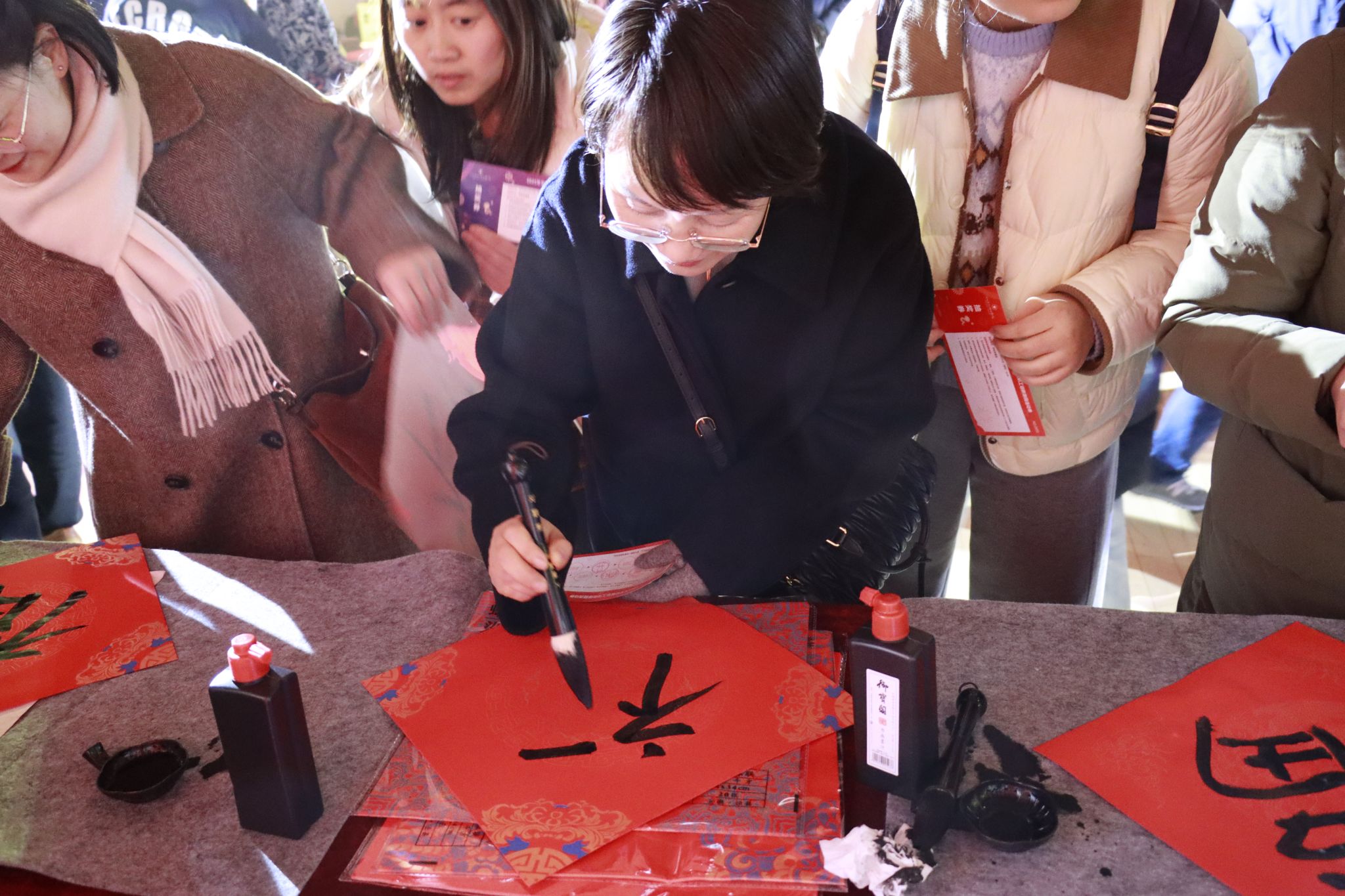 同时,游园会精心策划“套住吉瑞,圈住福祥”“蛇年接福,射出好运”等九个趣味盎然的项目,供大家游玩体验、打卡集章。每个项目都吸引了众多教职工踊跃参与,现场欢声笑语不断,呐喊助威此起彼伏。一张张福字,让现场的年味更加浓厚。