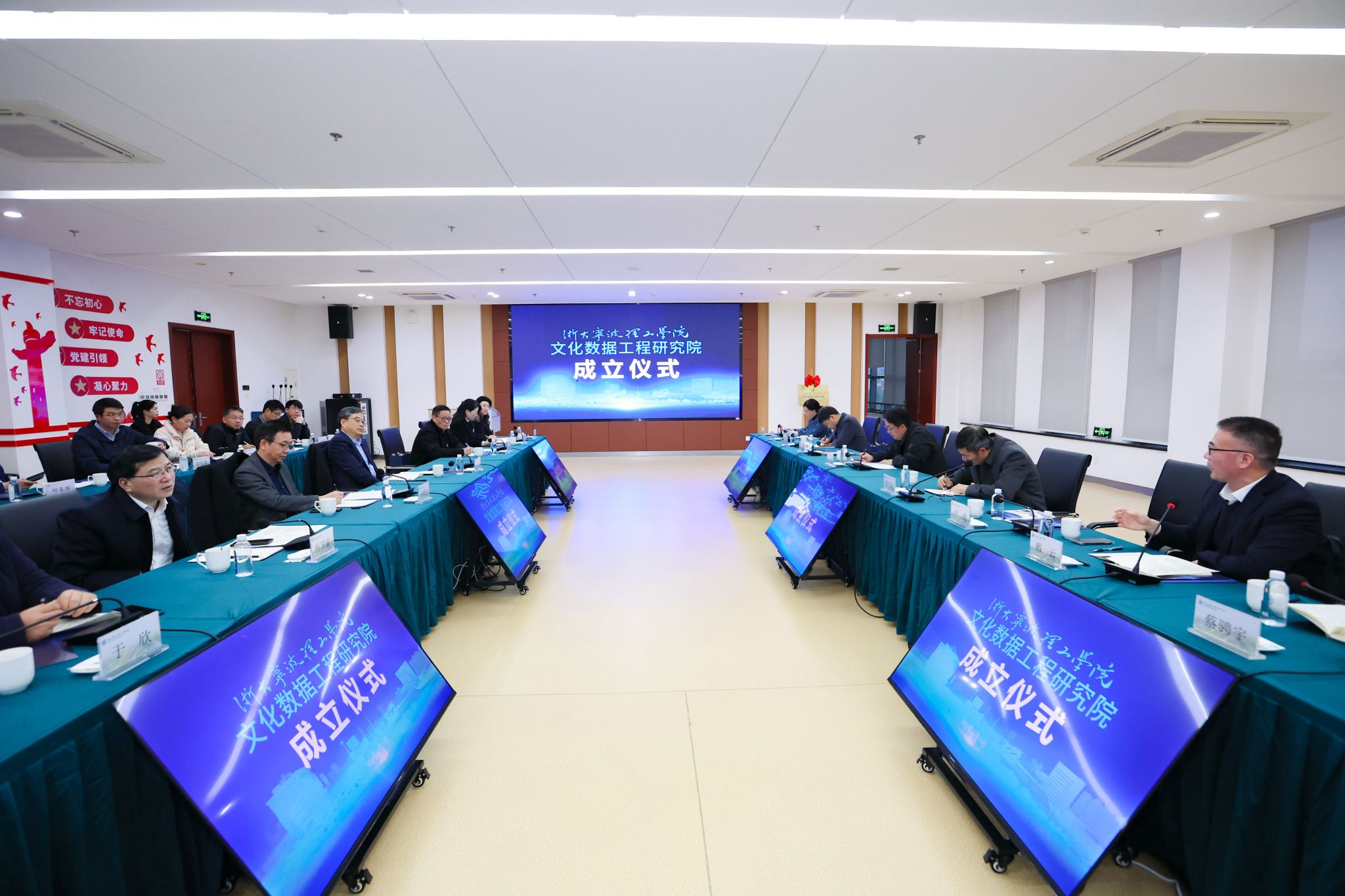 为深入贯彻落实国家大数据战略,推进文化与科技深度融合,12月11日,浙大宁波理工学院举行文化数据工程研究院成立仪式。浙江省委宣传部文化发展研究中心主任郭林,浙江省教育厅高等教育处四级调研员卢燕,宁波市委宣传部常务副部长焦剑,宁波市数据局党组书记戴云,宁波市科技局副局长闻霞,以及学校党委书记徐方,校长杨德仁院士,副校长鲁东明参加仪式。学校党委副书记杨国富主持。
