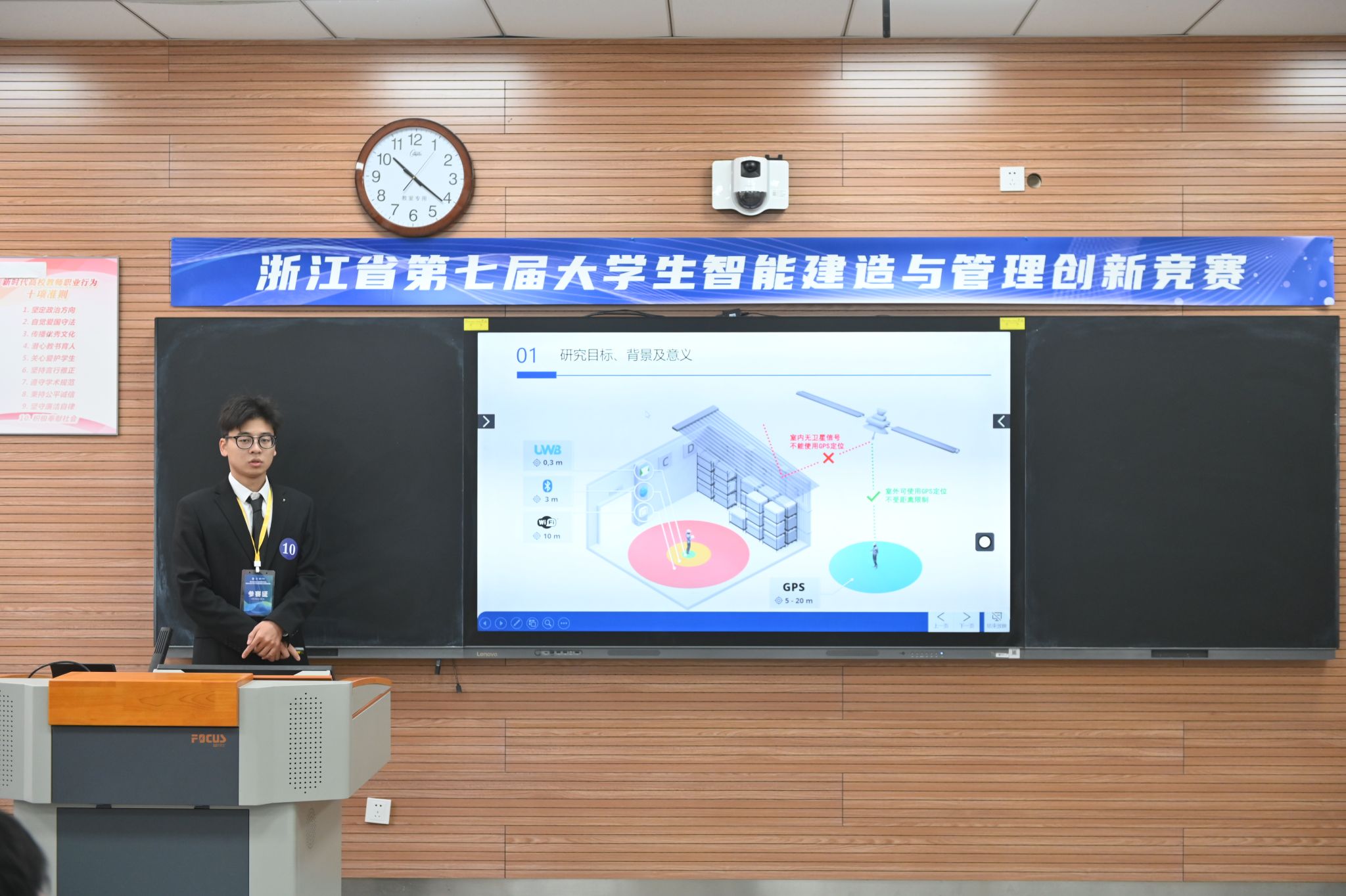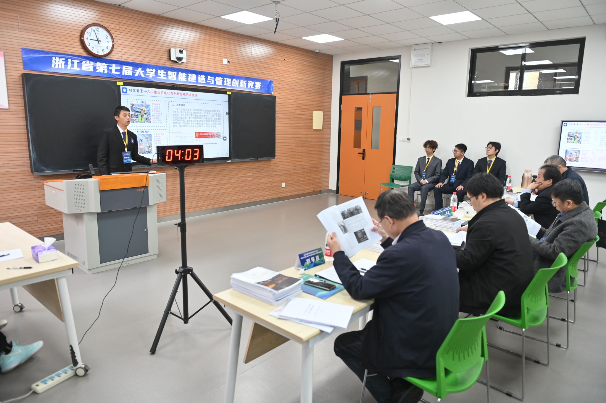 12月7日,浙江省第七届大学生智能建造与管理创新竞赛决赛在我校举行,来自浙江工业大学、浙江理工大学和浙江财经大学等省内11所高校的22支参赛队伍进行了决赛现场答辩。经过激烈角逐,评出特等奖2项、一等奖 3 项和二等奖 6 项等奖项。我校在本次比赛中成绩突出,获得了特等奖1项、二等奖1项,并荣获优秀组织奖。