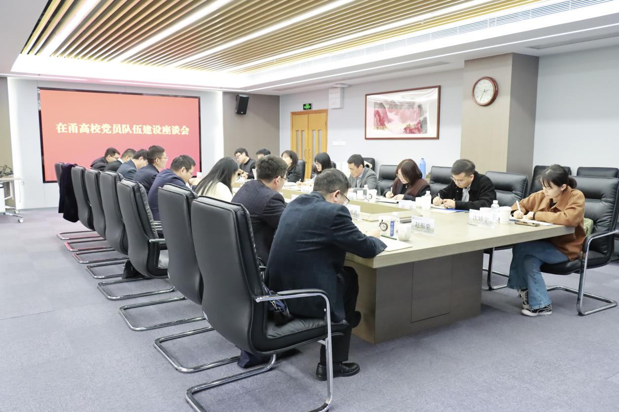 为深入贯彻落实党的二十届三中全会和全国教育大会精神,进一步加强我市高校党员队伍建设,提高党员素质,增强党组织的凝聚力和战斗力,推动在甬高校党建高质量发展,2024年12月4日下午,在甬高校党员队伍建设座谈会在我校召开。市委组织部组织一处处长魏仲庆、市委教育工委秘书处处长司庄,市委组织部组织一处三级主任科员严子琴,以及在甬12所高校组织部相关负责人参加会议。