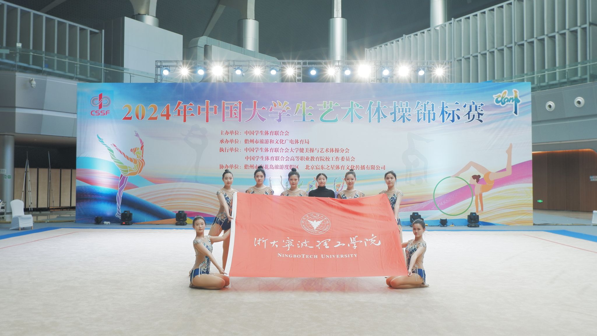 近日,2024年中国大学生艺术体操锦标赛圆满落幕。浙大宁波理工学院艺术体操校队在启新学院体育教师刘思琪的带领下,首次踏上全国性比赛的舞台,凭借优异表现成功斩获甲组集体全能第五名、艺术集体操第六名以及个人全能第六名、六级带操第八名,团体总分第七名的好成绩。