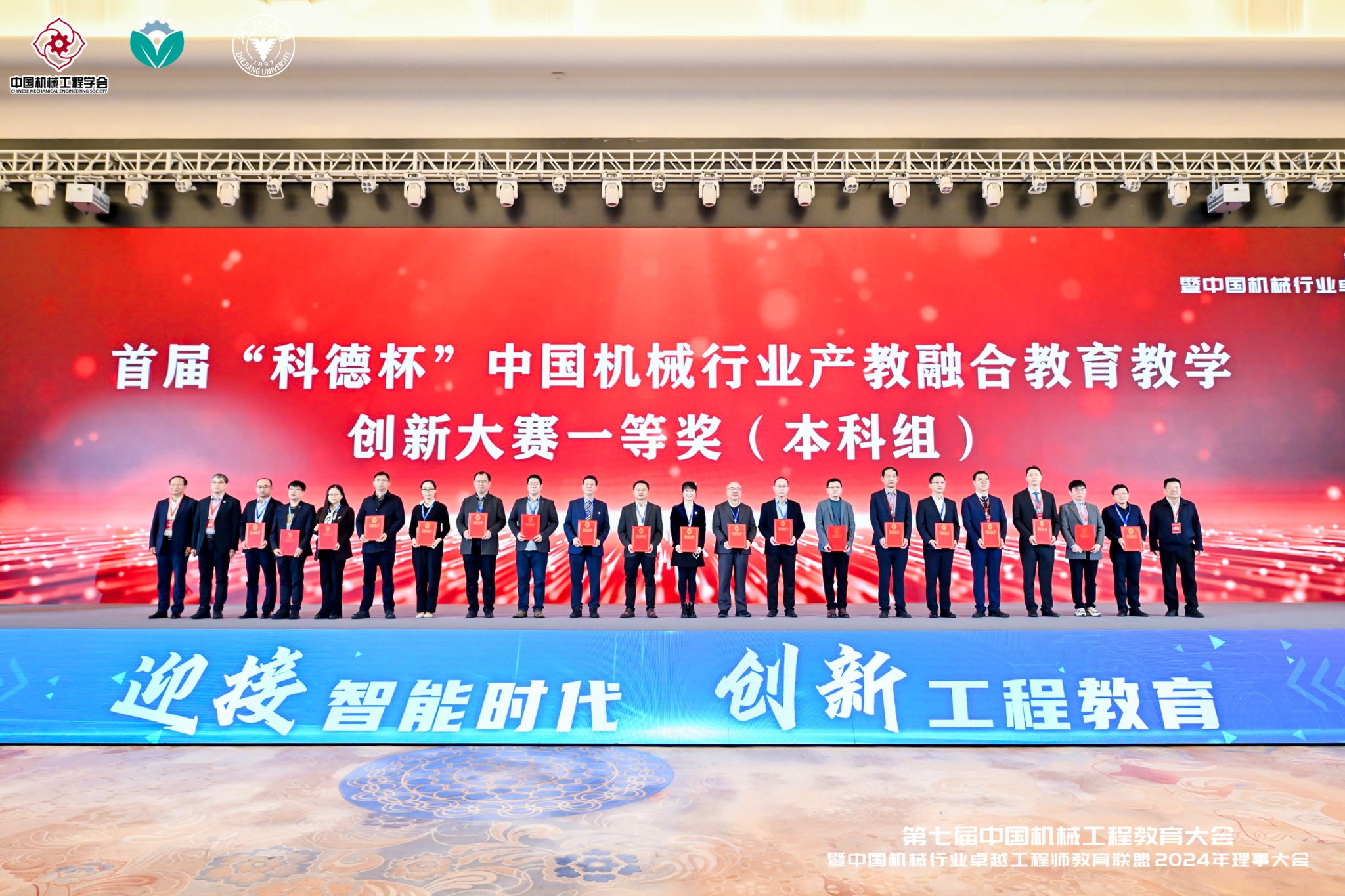 2024年11月25日,首届“科德杯”中国机械行业产教融合教育教学创新大赛全国总决赛在浙江大学落下帷幕。我校机能学院教学团队脱颖而出,荣获全国一等奖1项(本科组体系类)、华东赛区二等奖2项(本科组体系类)。