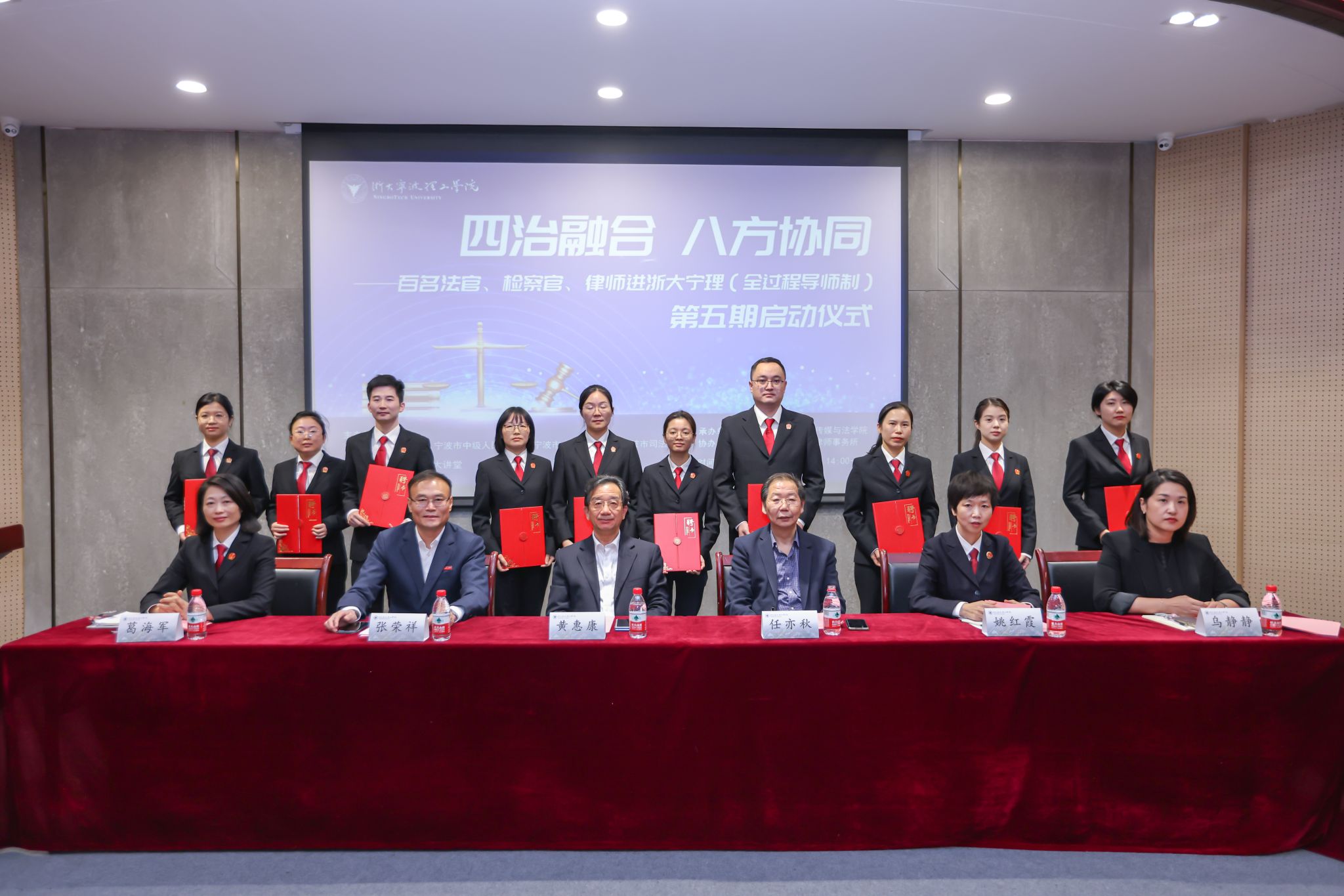 11月7日下午,浙大宁波理工学院、宁波市中级人民法院、宁波市人民检察院、宁波市司法局联合举办“百名法官、检察官、律师进浙大宁理”(全过程导师制)第五期启动仪式。此次活动特别邀请到我国资深外交官、外交部国际法咨询委员会主任、涉外法治人才协同培养创新基地首席专家黄惠康教授,浙江省人大常委会委员、省人大法制委员会副主任委员任亦秋出席,学校副校长张荣祥,宁波市人民检察院专委姚红霞,宁波市中级人民法院政治部副主任葛海军,宁波市司法局律师与法律援助工作处处长乌静静以及相关单位、律所的代表出席仪式。学校传媒与法学院教师代表以及法学专业2024级学生共同参加。