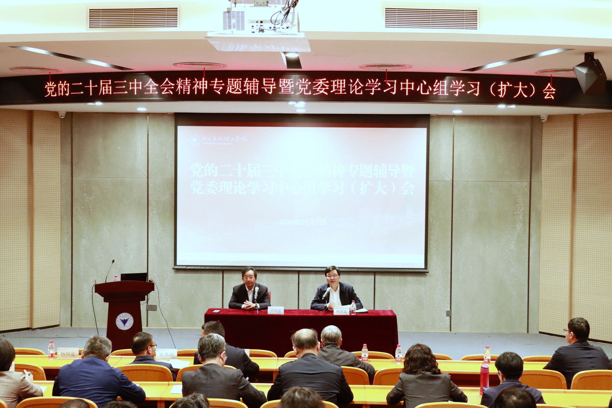 启动仪式后,黄惠康教授作题为《加强涉外法治建设的时代逻辑和根本遵循》专题讲座,此次辅导报告也作为学校党委理论学习中心组学习(扩大)会,校党委副书记杨国富主持,党委理论学习中心组成员、全体中层干部、统战团体负责人参会。