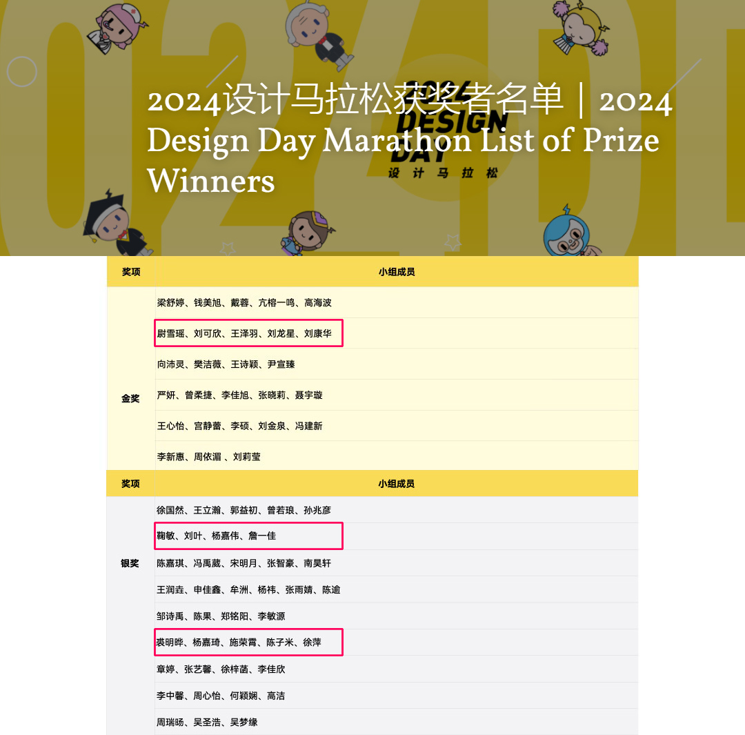 近日,我校设计学院学子在备受瞩目的2024年北京国际设计周设计马拉松竞赛中,智能交互设计专业231班的刘康华、徐萍和詹一佳三位同学凭借卓越的设计实力和团队合作精神,从全球众多参赛者中脱颖而出,斩获金奖1项,银奖2项。