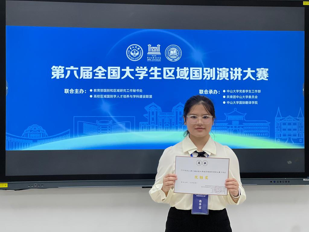 9月21日,由教育部国别和区域研究工作秘书处、高校区域国别人才培养与学科建设联盟主办的第六届全国大学生区域国别演讲大赛在中山大学(广州校区南校园)举行。在浙大宁波理工学院全球胜任力基地团队的组织和指导下,历经初赛、复赛、决赛的层层筛选与激烈角逐,浙大宁波理工学院外国语学院英语211班毛皓楠同学荣获全国总决赛二等奖,英语224班顾湘玲同学获优胜奖,指导教师林晶晶和罗贤娴获优秀指导教师奖。