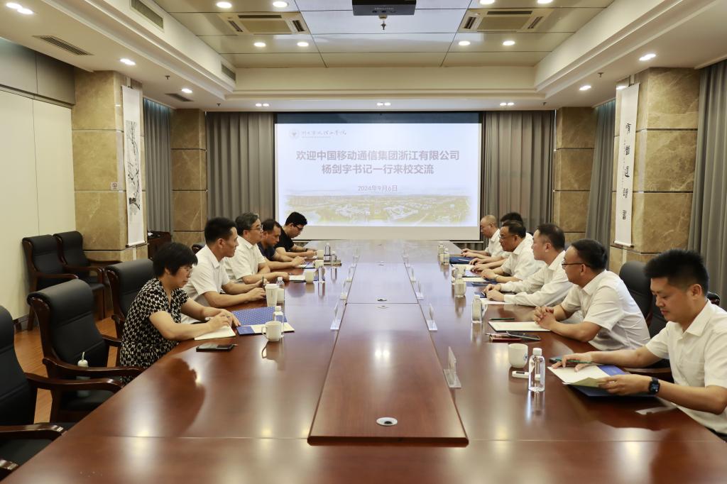 9月6日,中国移动浙江公司党委书记、董事长、总经理杨剑宇一行来校走访交流,学校党委书记徐方陪同并参加座谈。
