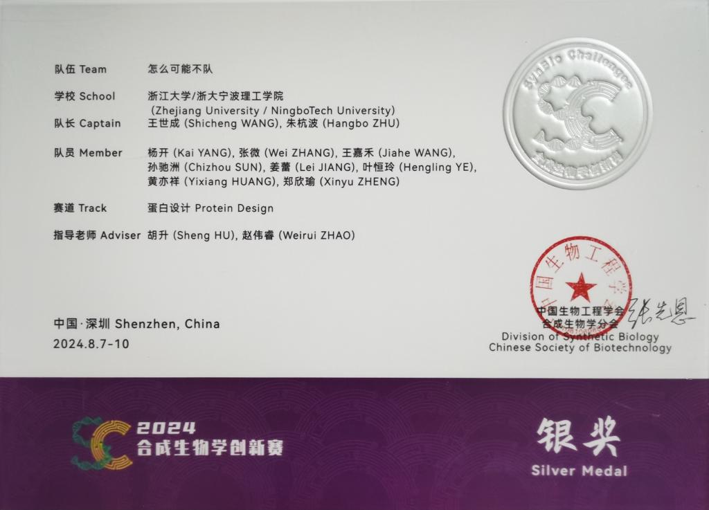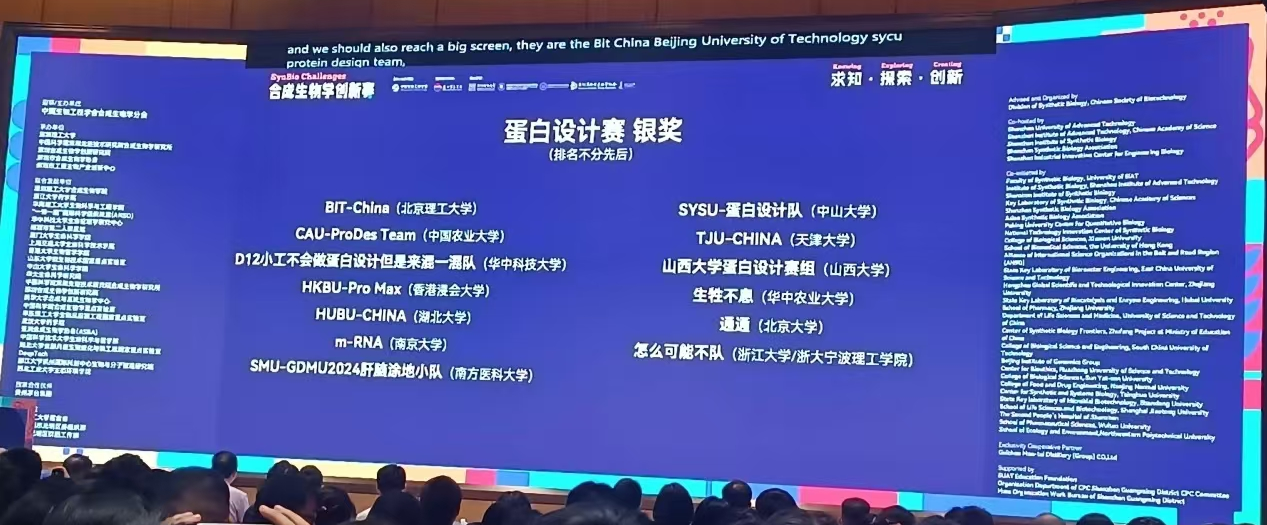 近日,中国第三届合成生物学创新赛在深圳举行颁奖仪式,我校胡升副教授、赵伟睿副教授指导的学生团队与来自北京大学、上海交通大学、日本早稻田大学等全球60余所高校的147支队伍同台竞技,通过激烈比拼斩获银奖!