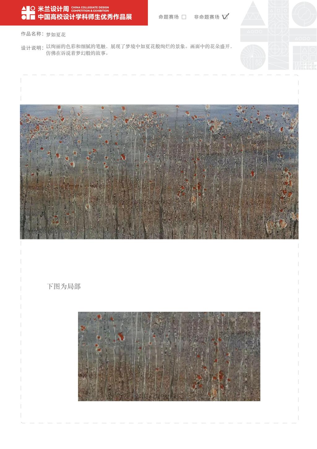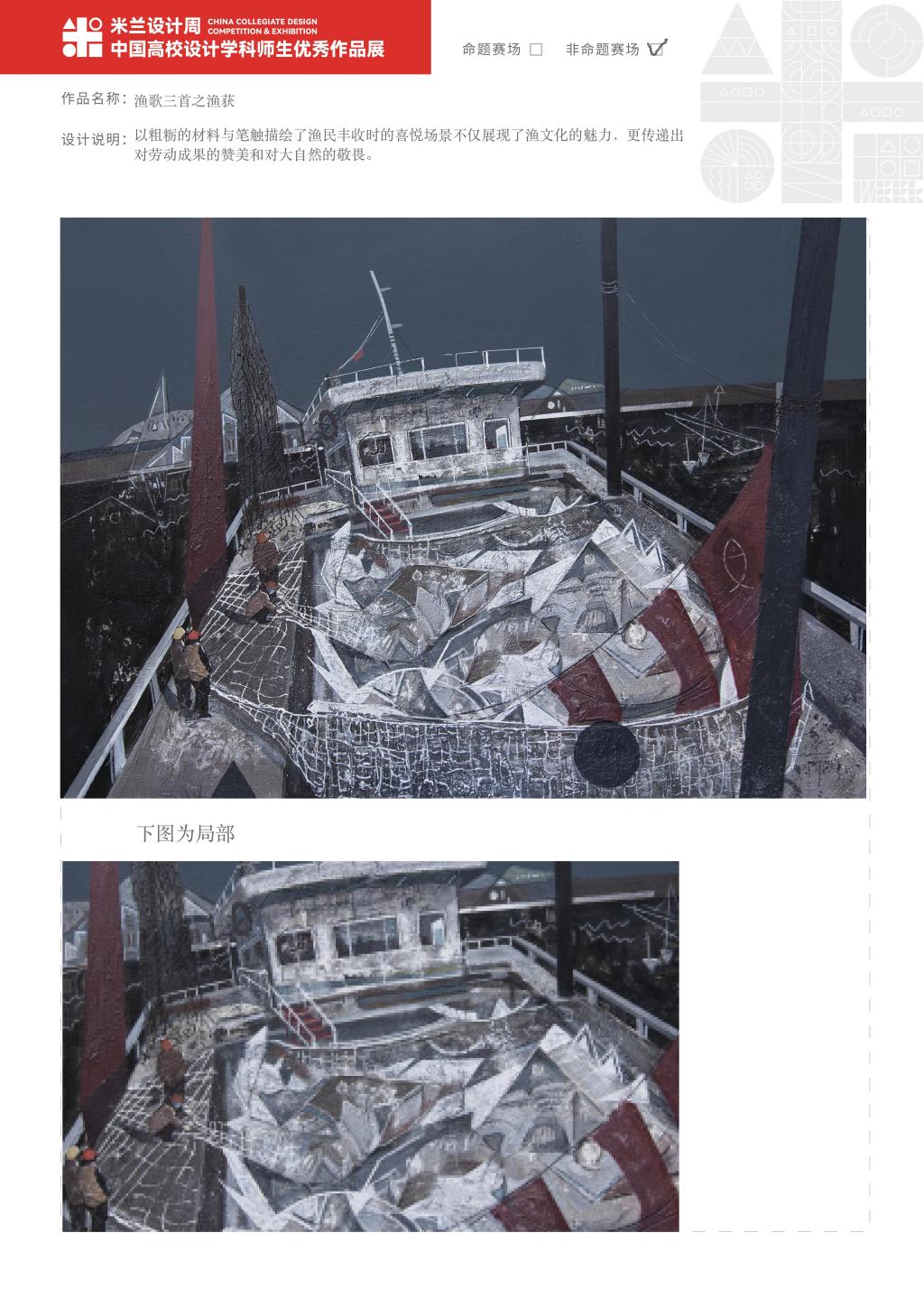 教师组作品中,陈嘉昊老师的作品《渔歌三首之渔获》和《世纪梦-船行曲》分别斩获国家二等奖,黄小华老师的作品《梦如夏花》斩获国家三等奖,不仅彰显了我校设计学院教师独特的艺术魅力和深刻的文化内涵,也充分展现了他们卓越的设计才华和深厚的艺术修养。