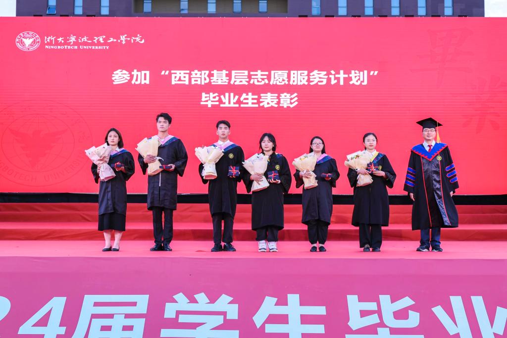 学校副校长鲁东明宣布2024届优秀毕业生、升学“双一流”或全球百强高校毕业生和参加“西部基层志愿服务计划”毕业生名单;学校党委书记徐方,副校长章献民、张荣祥,党委副书记杨国富分别为上述优秀毕业生代表颁发荣誉证书,并赠送纪念品。