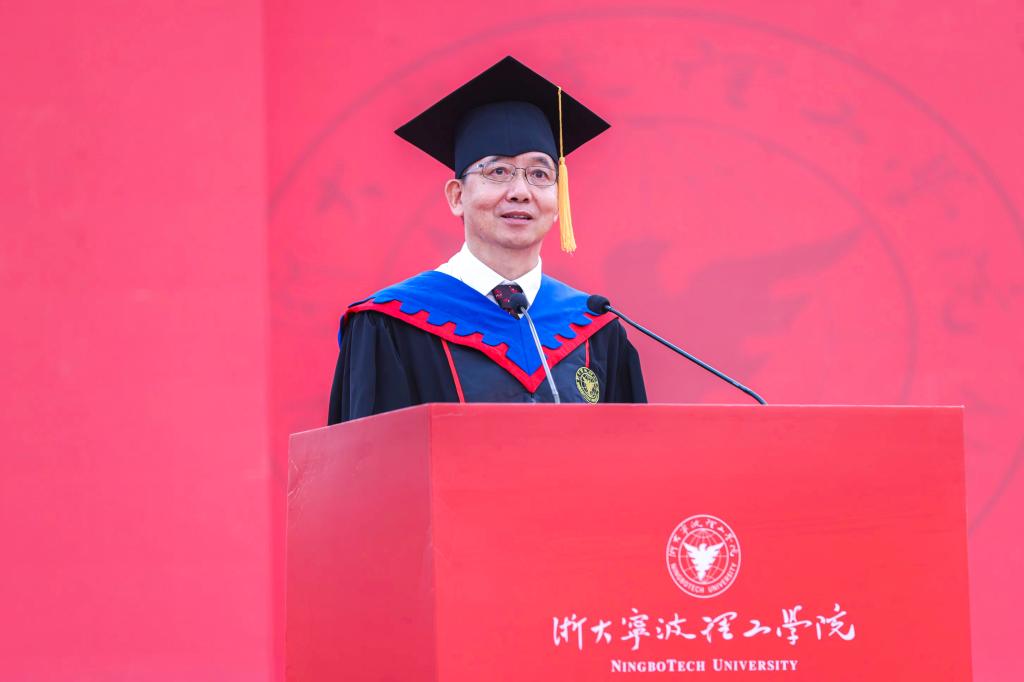 校长杨德仁院士对在场的毕业生致以诚挚的寄语:“以奉献展现青春人生的应有价值!”2024届学生是学校成功转设后录取的第一届学生,见证了庆祝建党百年、建团百年的伟大时刻;同时,学校疫情防控持久战、本科教学合格评估主动战、硕士点申请攻坚战等,都留下了同学们爬坡过坎、并肩作战的身影。杨德仁院士以“奉献”为主题,用三句话勉励毕业生们:从“修齐治平、兴亡有责”中厚植为民情怀,从“施舍不倦、求善不厌”中涵养文化情怀,从“久久为功、善作善成”中激荡务实情怀。希望同学们胸怀家国、心系天下,学会在实践与奉献中,探寻并实现自我的价值,争做敢于担当、善于作为的新时代“硬核”青年。