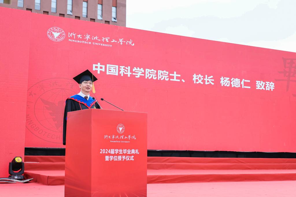 同学们,你们是学校成功转设后录取的第一届学生,也是我担任校长,迎接的第一批新生。四年前的2020年9月27日,是我们跨越山海,集体会面的日子。皎洁的月光下,我们也是坐在这里,围绕“大学将决定一个人成就何事、行至何处、成为何人”这个主题,进行了思考和探讨,开启了新的征途。春生夏长,秋收冬藏,过去1300多个日夜里,你们见证了庆祝建党百年、建团百年的伟大时刻,从红色基因中汲取奋进力量;“明德弘毅、开物启新”的校训磨炼了你们的意志和品格,浙大求是文脉和浙东“经世致用”思想涵养了你们的风度和气质。疫情防控持久战、本科教学合格评估主动战、硕士点申请攻坚战等,都留下了大家爬坡过坎、并肩作战的身影。作为校长,我由衷感谢你们对浙大宁理大家庭的付出和包容;我也期待浓厚的师生情、同窗情,在校园里生根发芽,到五湖四海落地开花。