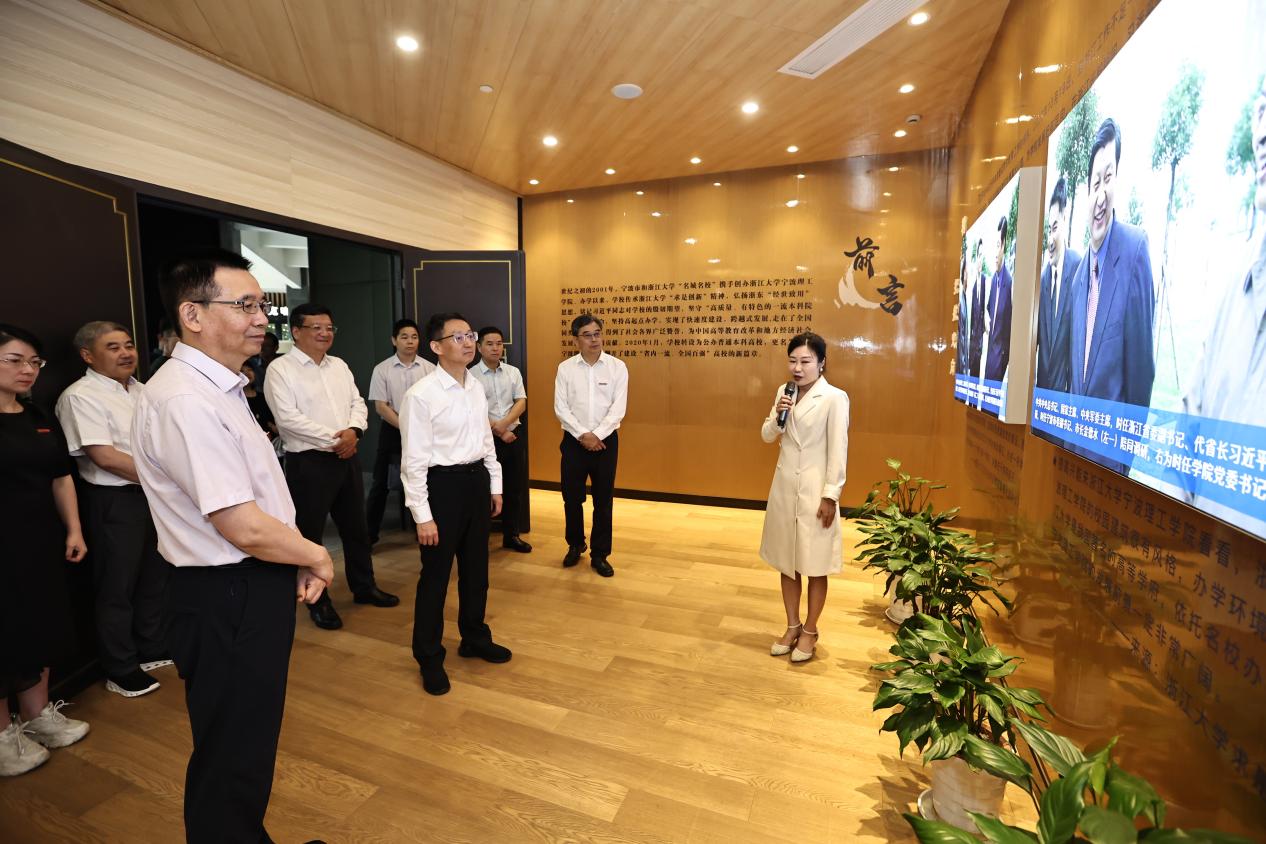 宁波市政府办公厅副主任马建江,宁波市教育局党委书记、局长毛才盛,学校副校长章献民,党委副书记黄光杰陪同调研。