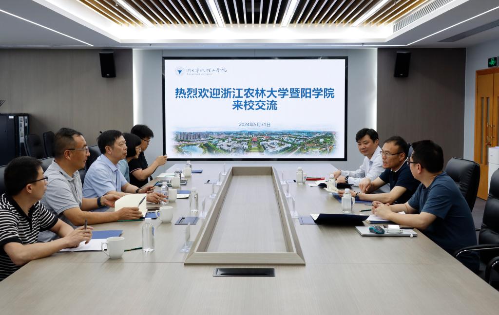 5月31日下午,浙江农林大学暨阳学院院长徐光辉一行来校调研交流。我校副校长张荣祥出席调研座谈会,教务处、图书馆等部门负责人参加座谈。