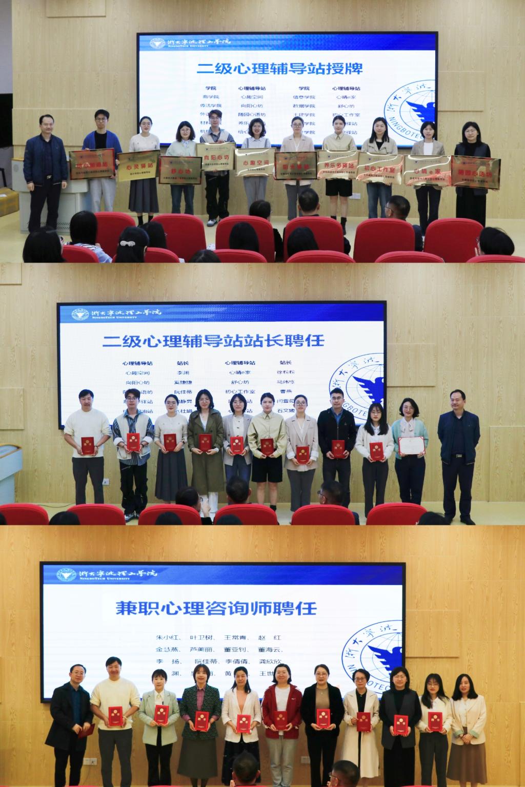 学校与民康医院签署心理健康医校合作协议,并为民康医院张连仲医生颁发精神卫生专家聘书。会上,还为10名心理辅导站授牌并为站长颁发聘书,为16名兼职心理咨询师颁发聘书。启动仪式结束后,由张连仲医生和学工部李慧老师为全体辅导员开展心理专题培训。