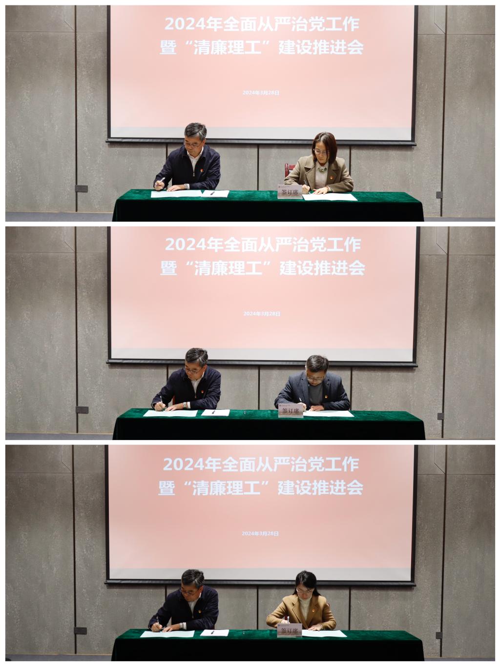 徐方代表学校党委分别与院级党委代表签订《党风廉政建设责任书》,切实增强推进全面从严治党和党风廉政建设的责任意识,强化责任担当。