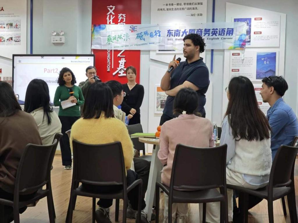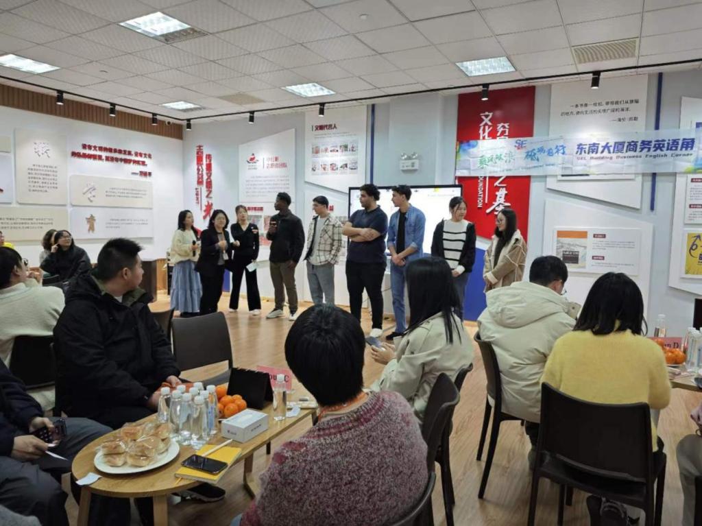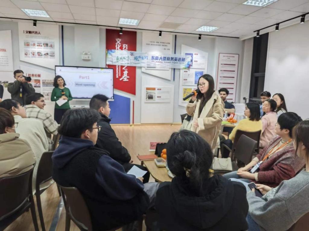 我校与东南物流集团有着长期的合作。2020年起,宁波港东南物流集团有限公司向学校捐赠100万元,设立“东南物流”奖学金,用于资助我校商学院优秀学子。此次活动是东南物流集团策划的商务英语角活动第一期,之后的活动国际生将持续参与其中。未来,学院将继续深化与东南物流集团的交流与合作,为国际生提供参与集团开发项目,零距离体会宁波优秀企业的工作内容和风格,深度感受在甬企业奋勇争先、勇立潮头的企业精神的机会和平台。
