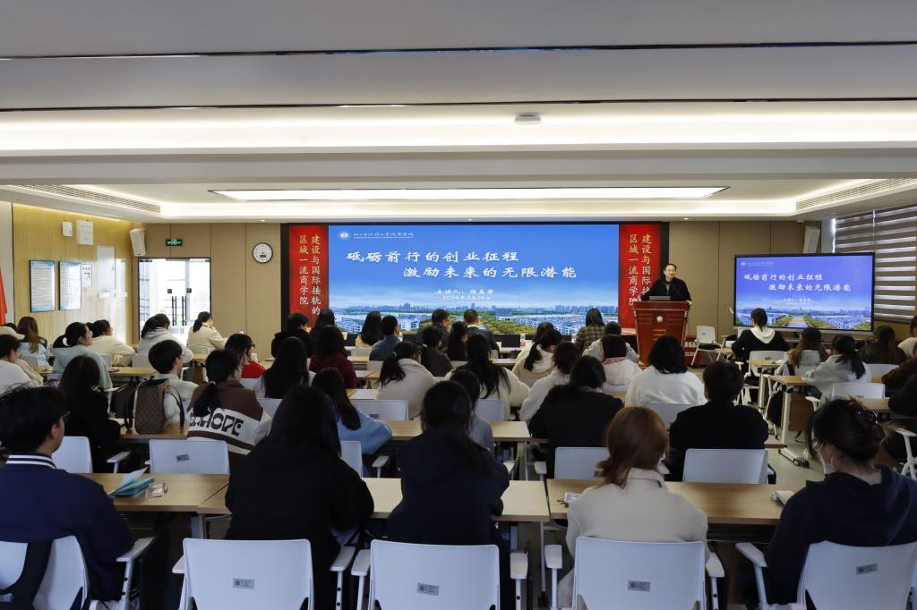 为拓宽学生专业视野,了解产业创新发展趋势,提高学生创新创业能力,3月19日下午,学校特邀浙江恒河实业集团有限公司董事长杨孟君,以“砥砺前行的创业征程,激励未来的无限潜能”为主题,作为商学院首届“商道•企业家论坛”为我校师生进行分享。学校党委副书记黄光杰、商学院相关负责人等出席活动。