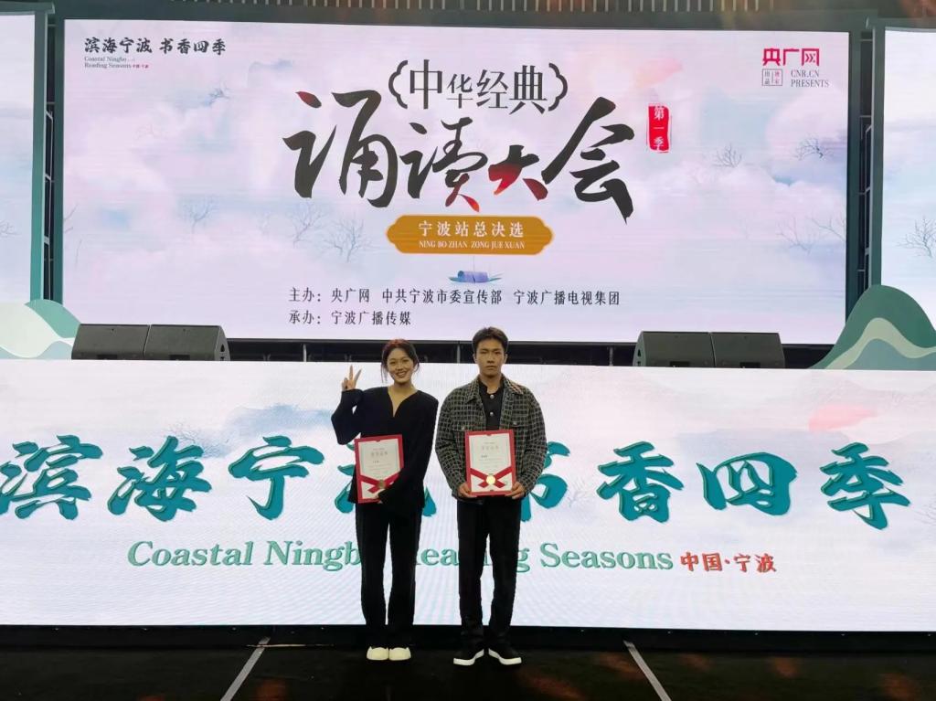 此外,在“中华经典诵读大会”宁波站期间,我校商学院鲍昱疌凭借《满江红》荣获三等奖,商学院陈诺涵、郑婕、赵铁林和传法学院徐浩博、周金炯荣获优胜奖,陈艳老师荣获优秀指导教师荣誉称号。