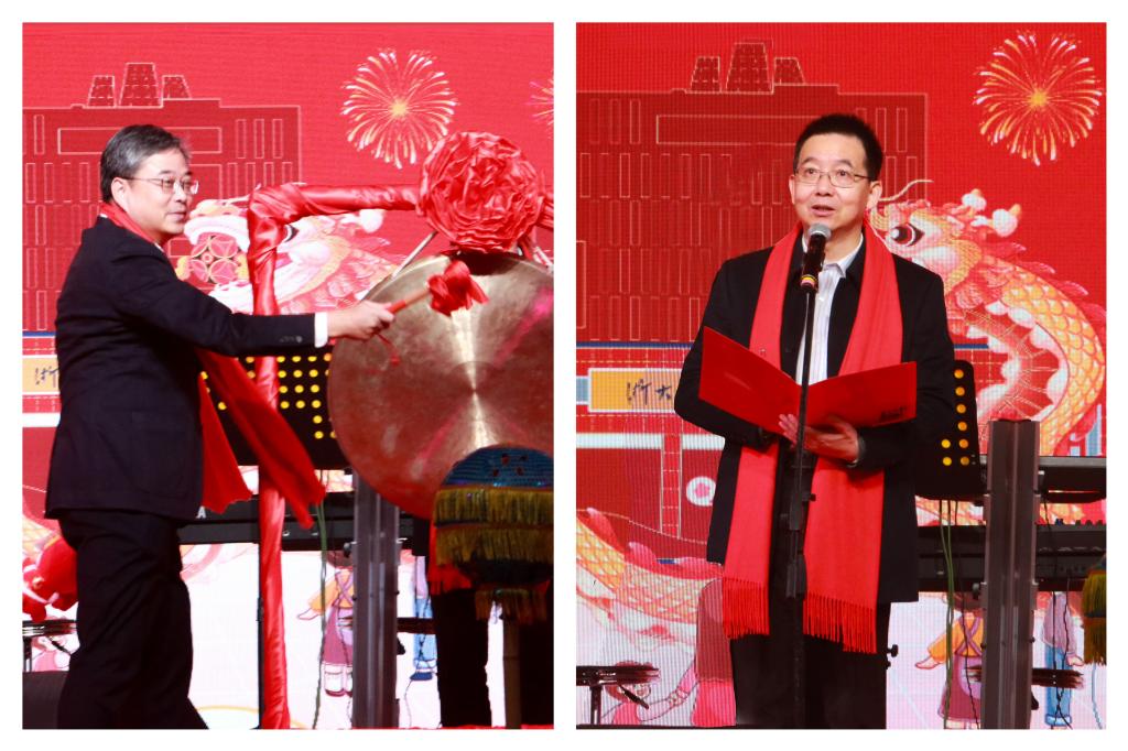 党委书记徐方为游园会鸣锣开幕。校长杨德仁向全校师生、广大校友、社会各界致以新年的祝福,2023年是学校加快建设高水平应用型大学的关键之年,学校以主题教育破题、以调查研究开路、以真抓实干求变,循迹溯源学思想、促践行,高质量落实本科教学合格评估,全力以赴打好申硕攻坚战,以“数字化设计与制造”和“智慧化港口与服务”两大学科群建设为牵引,精准对接地方产业需求,全力推进有组织科研,师生在各项领域的赛事中屡获佳绩。展望2024,希望广大浙大宁理人始终坚守为党育人、为国育才的初心使命,坚持“为国家和地区培养卓越专业人才”重要理念,推进“创新、特色、质量”为核心的内涵式发展,奋力谱写建设“省内一流、全国百强”高水平创新性应用型大学新篇章!