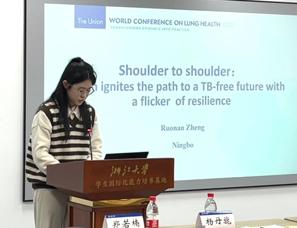 在12月8日举行的青年学生讲坛上,我校英语213班郑若楠同学做了报告发言,主题为“Shoulder to shoulder: Youth ignites the path to a TB-free future with a flicker of resilience”。报告主要讲述了其作为中国结核病防治行动志愿者参加的相关活动,特别是受国家疾控中心委派赴法国巴黎参加第54届全球肺部健康大会的宝贵经历。通过报告分享,与会者深刻了解到我国11年来已发动100余万名志愿者积极投身结核防治,在世界舞台上展现出中国青年志愿者在国际治理中的积极引领与国际胜任力。在12月9日举行“联合国外交官协商一致原则的具体运用”的模联实战主题活动中,我校其他5名同学们均有亮眼表现。