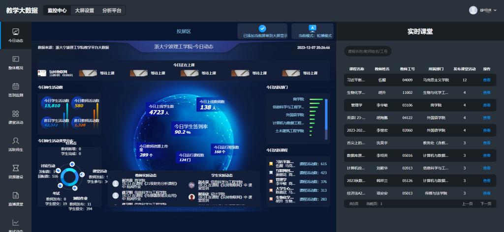 数据智能辅助管理决策。基于全流程教学数据分析,开展过程性考核与评价。教师通过数据了解学生学习历程、教学指标完成度,针对不同能力层次的学生开展差异化教学,帮助教师向“精准教学”转变。学生查看自己的学习数据分析,发现自己学习过程中存在的问题与不足,帮助学生向“精准学习”转变。管理人员对教学全过程中教师教学和学生学习行为进行全流程跟踪与分析,为教学管理和决策提供数据支撑,帮助管理人员向“精准管理”和“精准服务”转变。