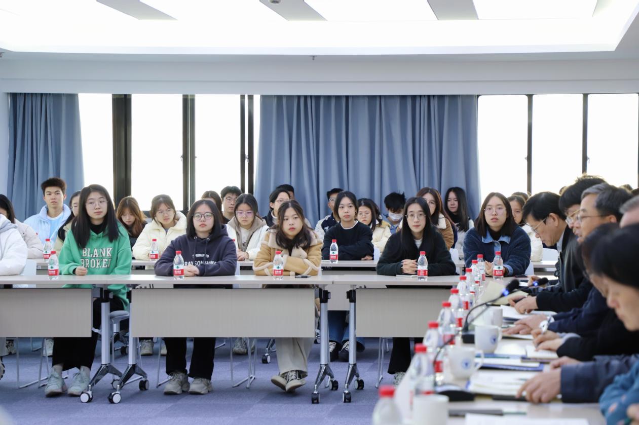 宁波知识产权保护中心办公室钱龙主任介绍了宁波知识产权保护中心相关的组织情况,强调了当前知识产权的重要性,希望同学们在法治学习的道路上不断进取。浙江波宁律师事务所主任范云建议要加强专业协作,拓展人才培养途径,开展形式多样的交流活动,营造涉外法律文化的学习氛围,从而扩大人才班的影响。宁波国际商事法庭庭长马洪提出,成才之路努力重要、选择更重要的观点。浙江波宁律师事务所副主任高静芳以学姐的亲切身份向同学们传授经验。现场气氛热烈,在场人员畅谈优化营商环境与卓越法律人才培养。