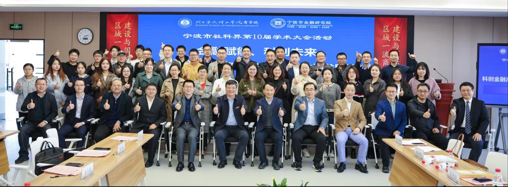 为深入学习“八八战略”和中央金融工作会议精神,宁波市社科界第十届学术大会学术活动“金融赋能,科创未来——科创金融高质量促进宁波未来产业发展论坛”于11月19日成功召开。本次论坛由宁波市数字普惠金融研究基地、宁波市金融研究院等主办。来自学界与业界的30余位专家、学校商学院16位优秀校友以及师生共60多人参加了此次论坛。