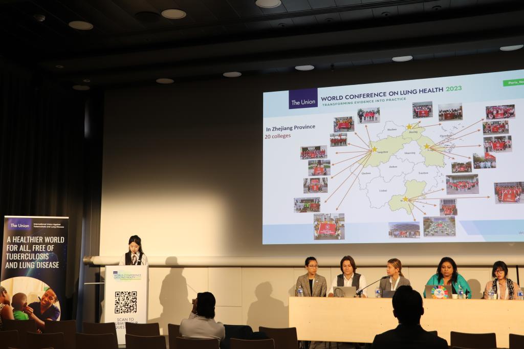 法国巴黎时间11月17日上午,我校英语213班郑若楠同学受国家疾控中心委派,作为中国结核病防治志愿者代表赴法国巴黎参加第54届全球肺部健康大会(The Union World Conference on Lung Health)做题为《A critical role of young volunteers in knowledge sharing in TB prevention and control: Case study from China—Shoulder to shoulder:youth ignites the path to a TB-free future with a flicker of resilience》专题报告,并与与会人员进行交流,向全球分享中国青年志愿者在推进实现世界卫生组织终结结核病流行目标中的引领和带动作用。