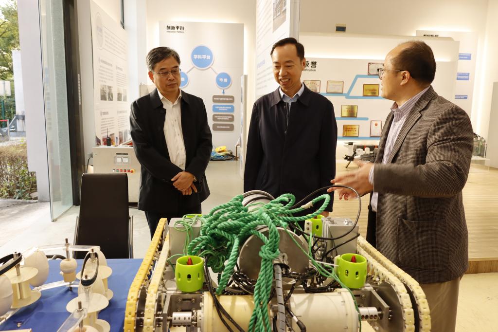 陈国军实地调研了学校极端密封实验室、智慧海洋牧场装备技术研究中心、数智物联网与大数据实验室。在走访调研中,陈国军详细了解了密封技术在空、天、海三大领域转化应用、智慧海洋牧场装备技术、“天一分”系统、“共同富裕精准画像”等宁波市重大项目的研究开发与建设进展,积极肯定科研团队在服务地方产业等方面所做的努力与探索。