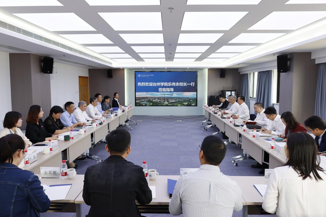 乐传永介绍了台州学院发展情况,对我校转设后在办学成果、人才引进、学生培养等方面给予积极评价,希望两校继续相互借鉴学习,加强交流合作。交流期间,双方就高质量党建推动高质量发展,高层次人才引育政策和举措,优势学科发展,多元引才、人才梯队及师资队伍建设,高校继续教育体制与机制创新,高校绿色学校建设等方面进行了探讨。
