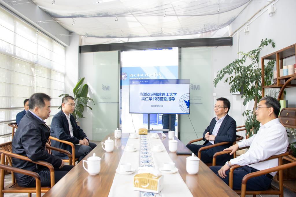10月21日,福建理工大学党委书记吴仁华在出席高水平应用型大学建设研讨会期间应邀到浙大宁波理工学院调研指导。学校党委书记徐方、校长杨德仁欢迎吴仁华来访并一起座谈交流。