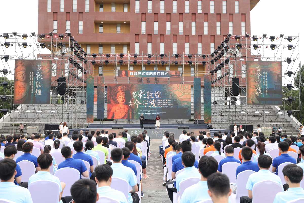 9月24日上午,“多彩敦煌 古今宁波”敦煌壁画艺术精品高校公益巡展浙大宁波理工学院站举行开幕式,历时数月筹备的展览面向师生、校友和广大市民正式开放。