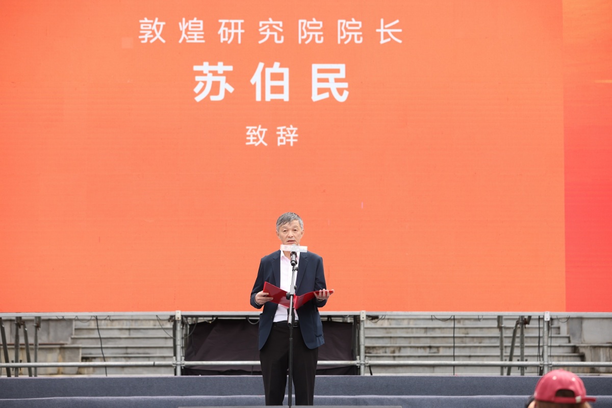 苏伯民在致辞时说,敦煌莫高窟是世界文化遗产,是中华民族优秀传统文化的代表,一代又一代莫高窟人肩负着历史的使命,怀揣着光荣的梦想,坚守在风沙弥漫的茫茫戈壁,让石窟文物持续绽放着文明的光彩。他表示,敦煌研究院自上世纪九十年代开始利用计算机技术保存壁画信息,经过多年的探索、创新,形成了一套科学的壁画数字化技术流程及技术规范,为敦煌石窟的长久保存、永续利用创造了条件。希望通过这次巡展,普及中华民族优秀的传统文化知识,培育青年学子自觉保护文化遗产、传承中华民族优秀文化的意识,成为优秀传统文化薪火相传、发扬光大的继承者。