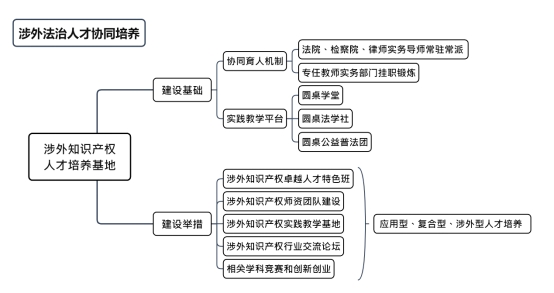 基地以我校法学专业与宁波地方涉外法律和涉外知识产权实务部门前期合作成效为基础,依托我校“百名法官、检察官、律师进校园”协同育人品牌和“行走的课堂”社会育人新机制,通过开设“涉外知识产权卓越人才特色班”、建立涉外知识产权实践教学基地、创建涉外知识产权行业交流论坛品牌等措施,积极打造实务部门协同育人合作机制、实务专家双导师制人才培养体系和知识产权产学研融合平台,积极探索涉外法治人才特别是涉外知识产权人才培养模式改革,扎实推进产教深度融合,培养具有国际水平的知识产权专门人才,提升高等院校的社会服务力和影响力,满足我国知识产权新发展阶段对高水平复合型人才的需求,为地方经济高质量发展提供有力的人才支持和智力保障。